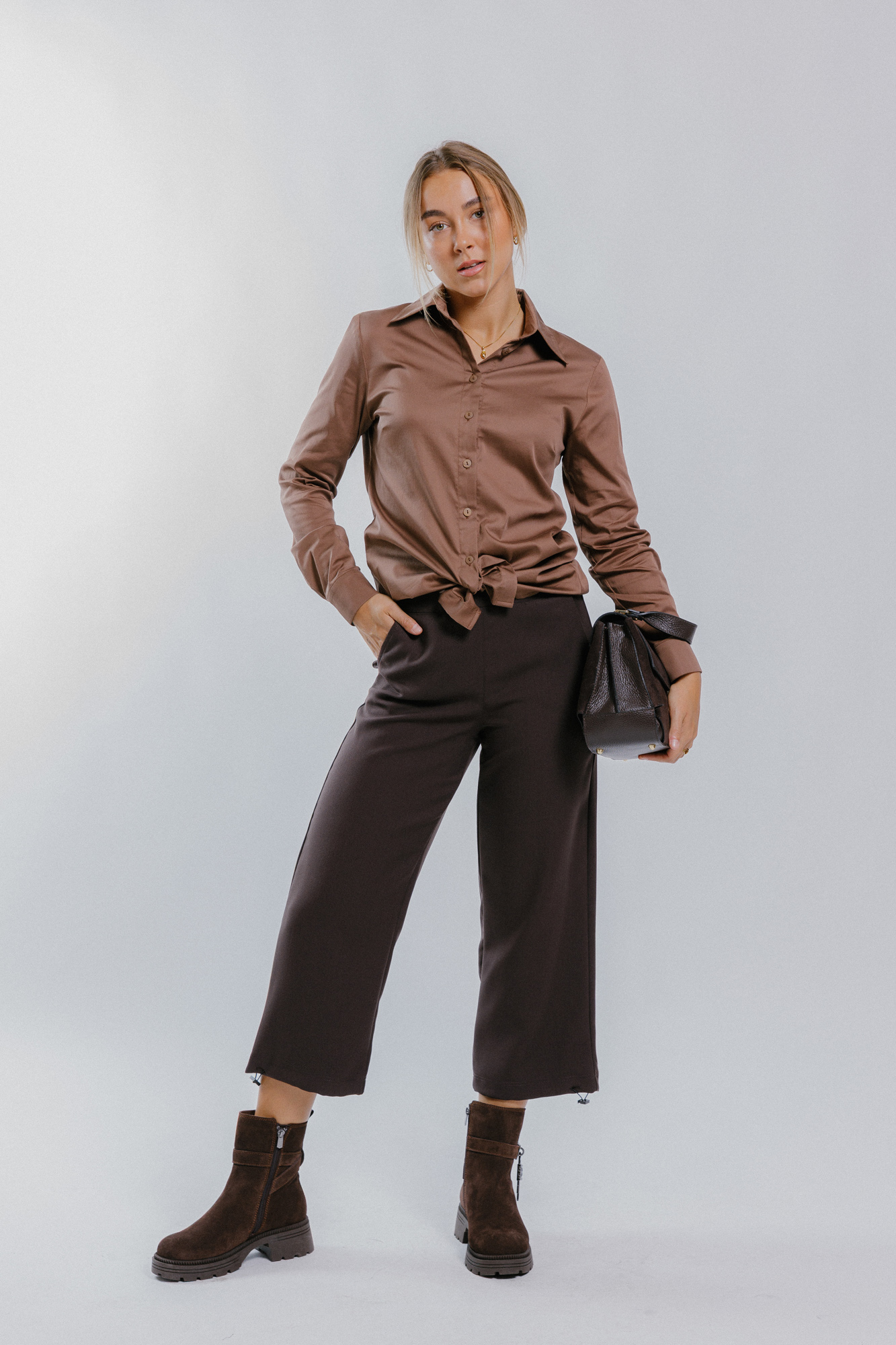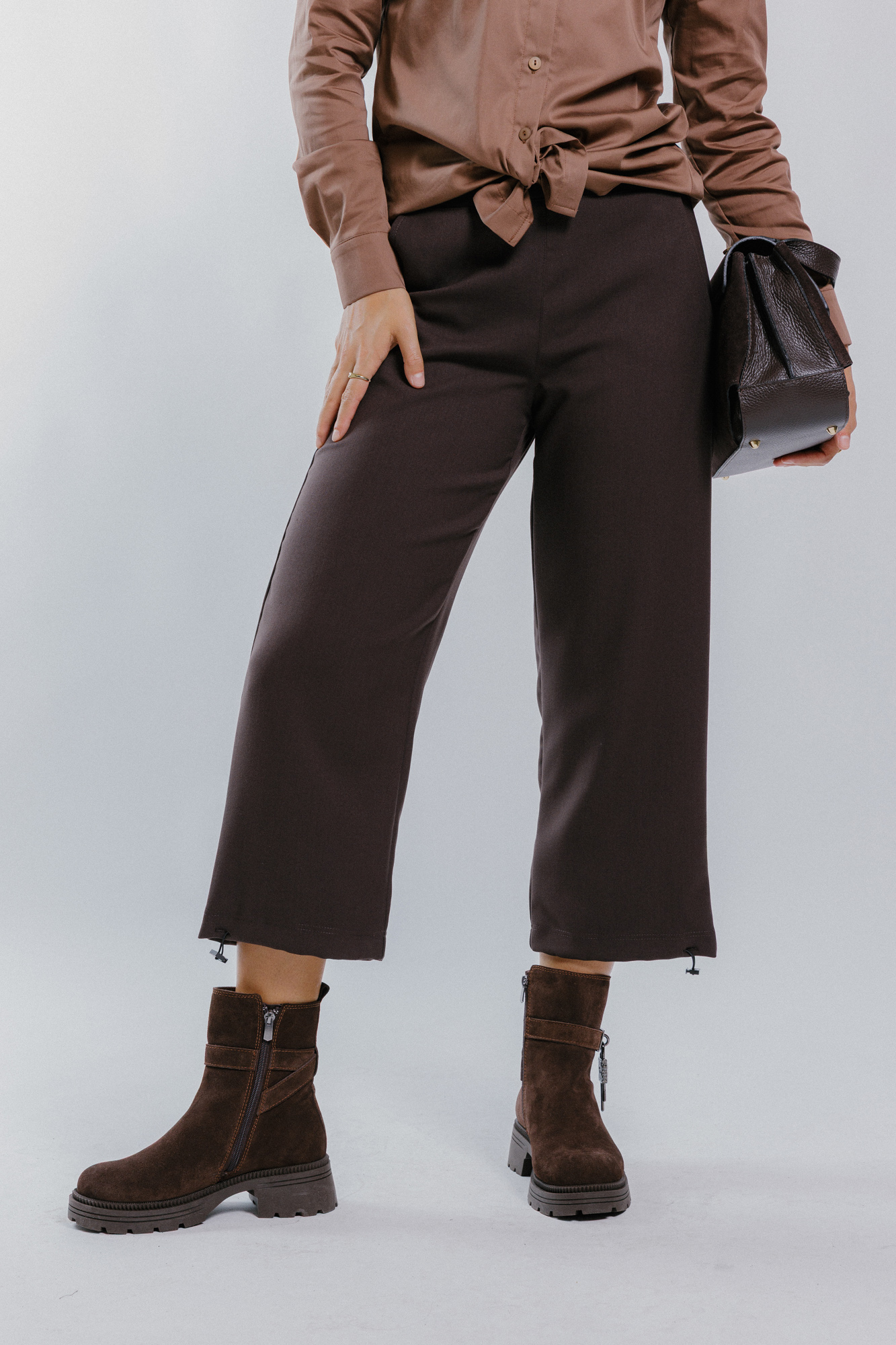Hnědé 7/8 kalhoty do gumy