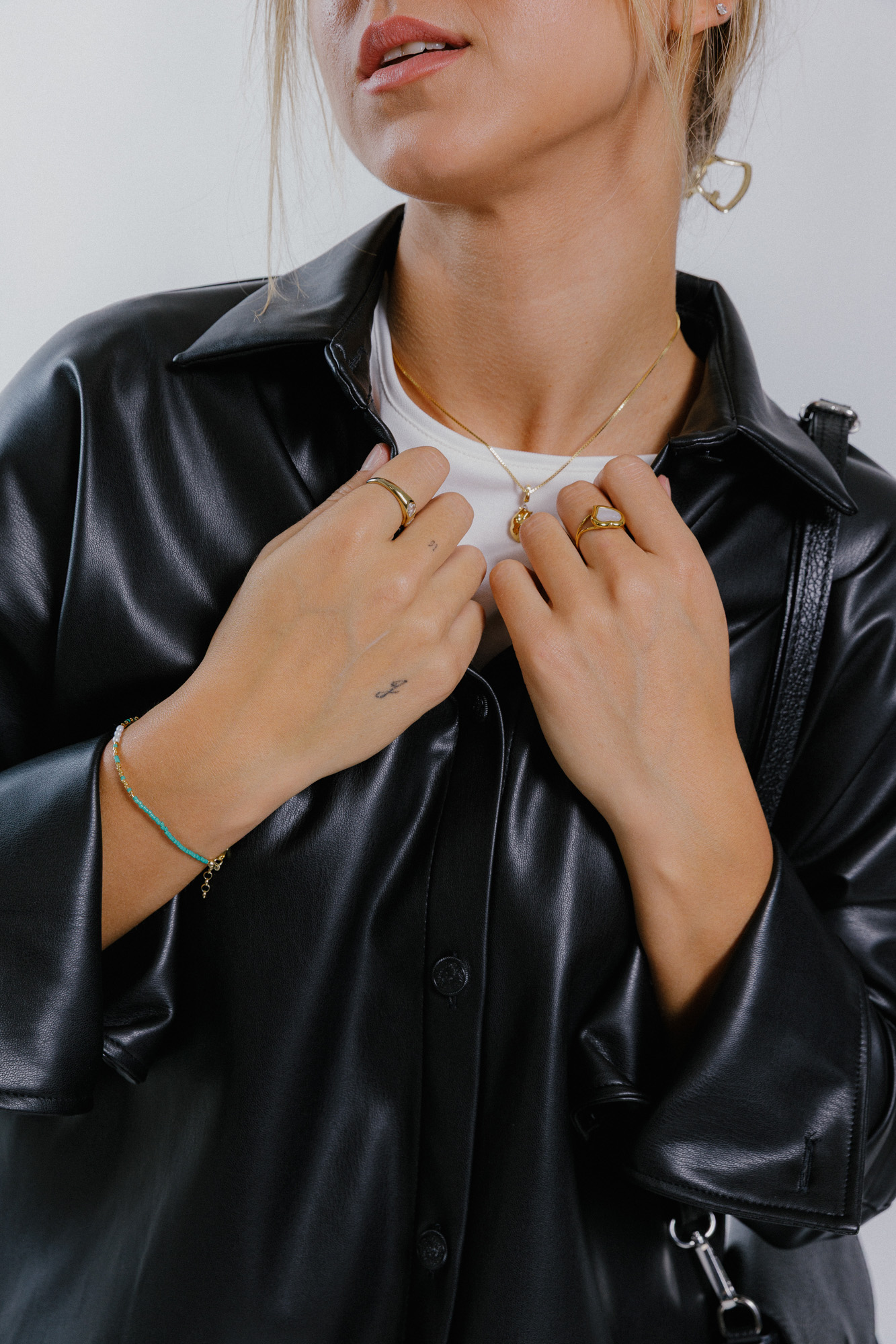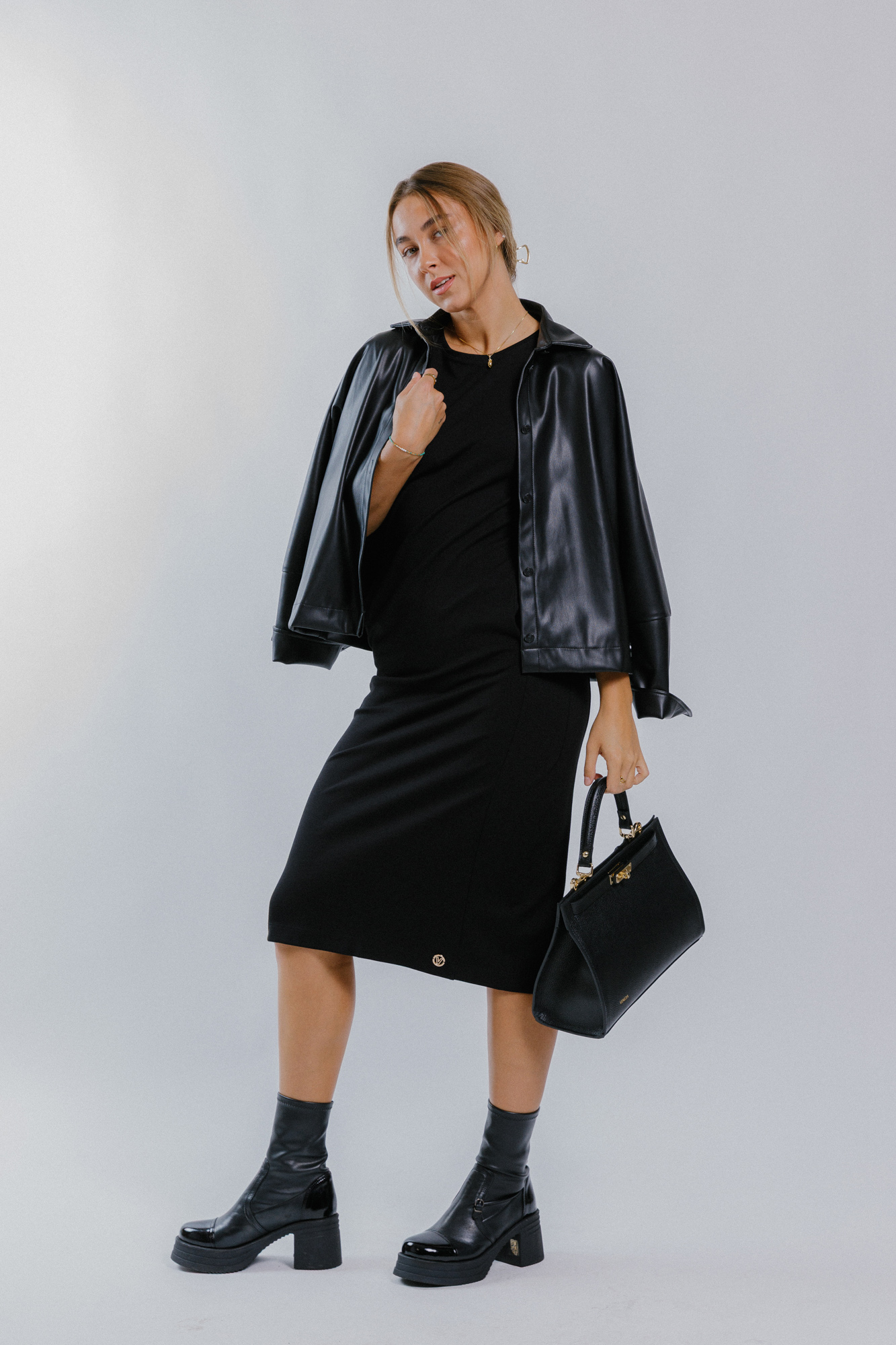 Míry modelky: prsa 85 cm; pas 65 cm; boky 92 cm; výška 174 cm. Modelka má na sobě velikost XS.