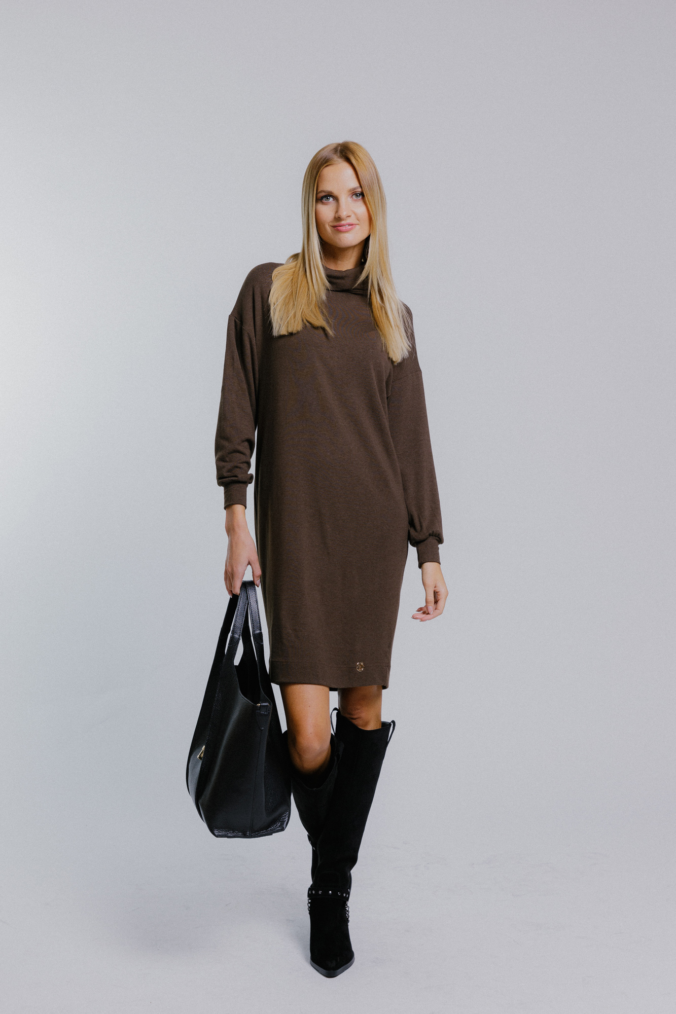 Rolákové šaty hnědé