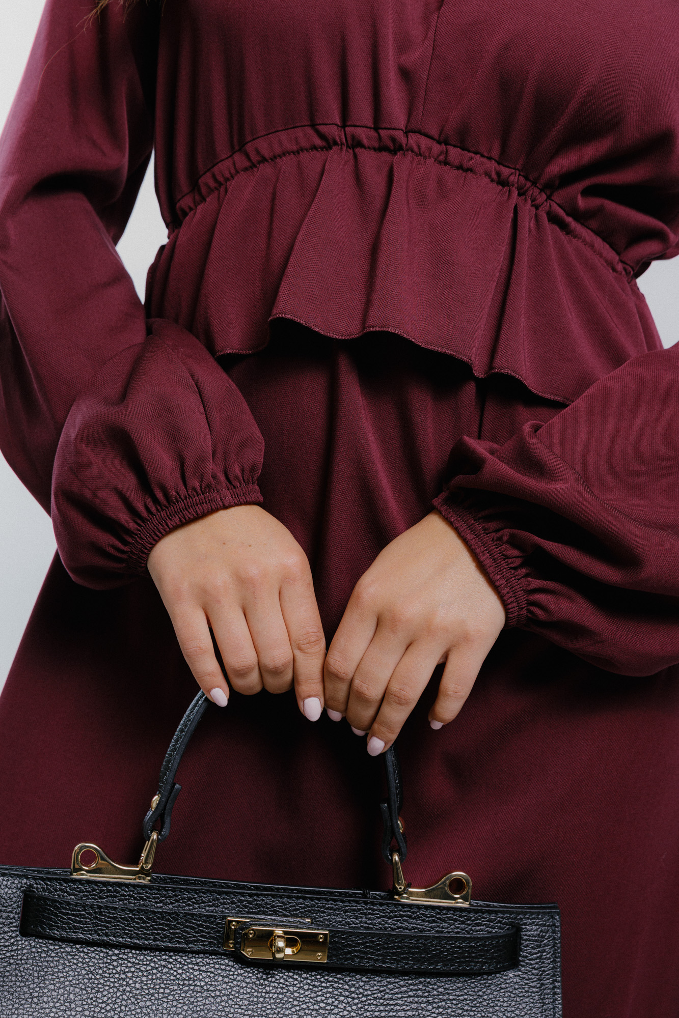 Míry modelky: prsa 85 cm; pas 65 cm; boky 92 cm; výška 169 cm. Modelka má na sobě velikost XS.