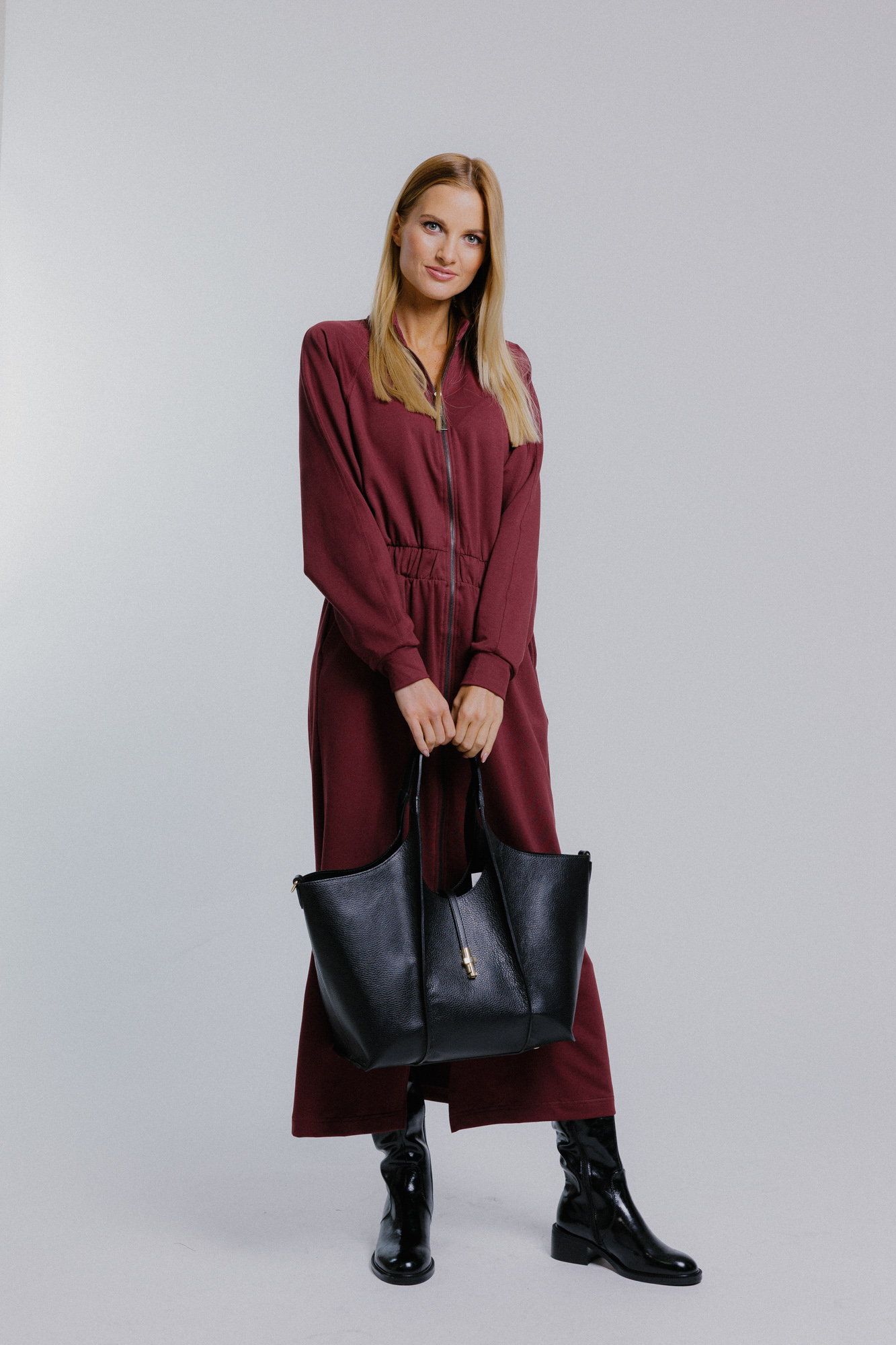 Míry modelky: prsa 89 cm; pas 60 cm; boky 85 cm; výška 175 cm. Modelka má na sobě velikost S.
