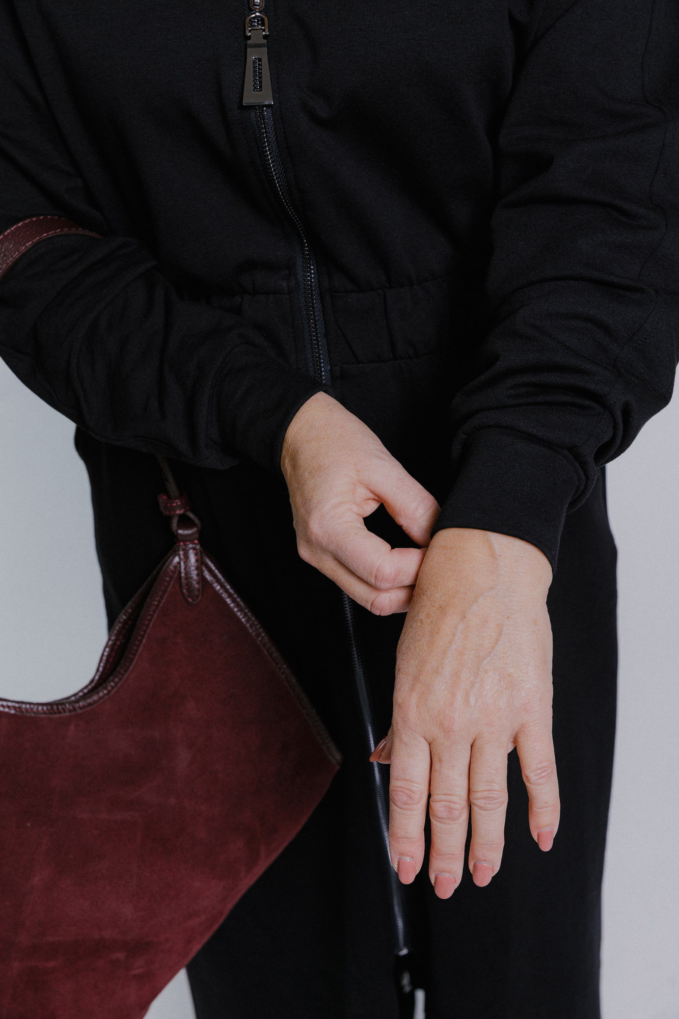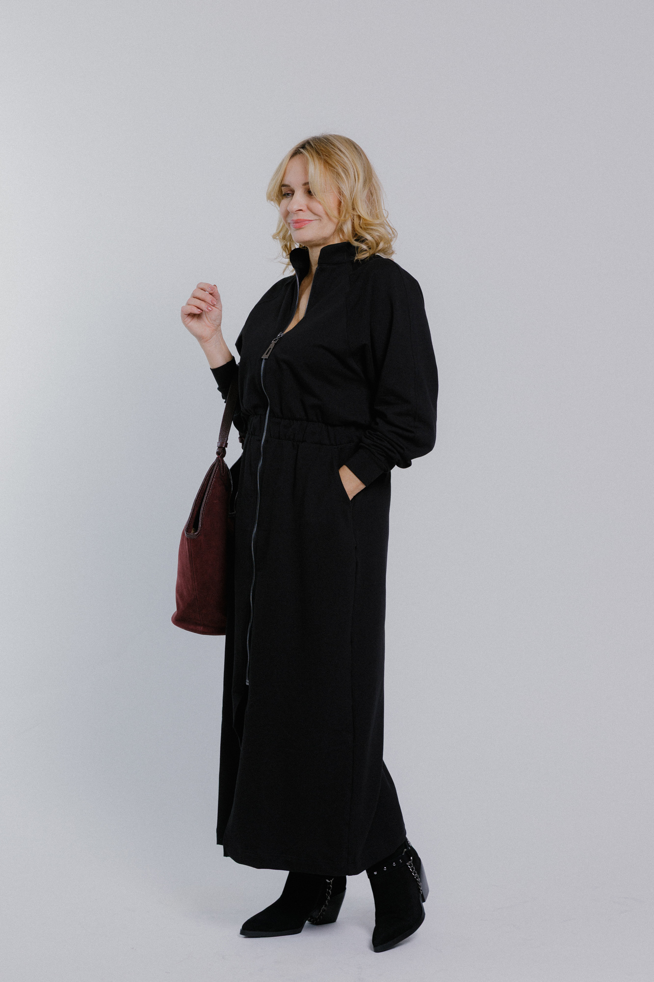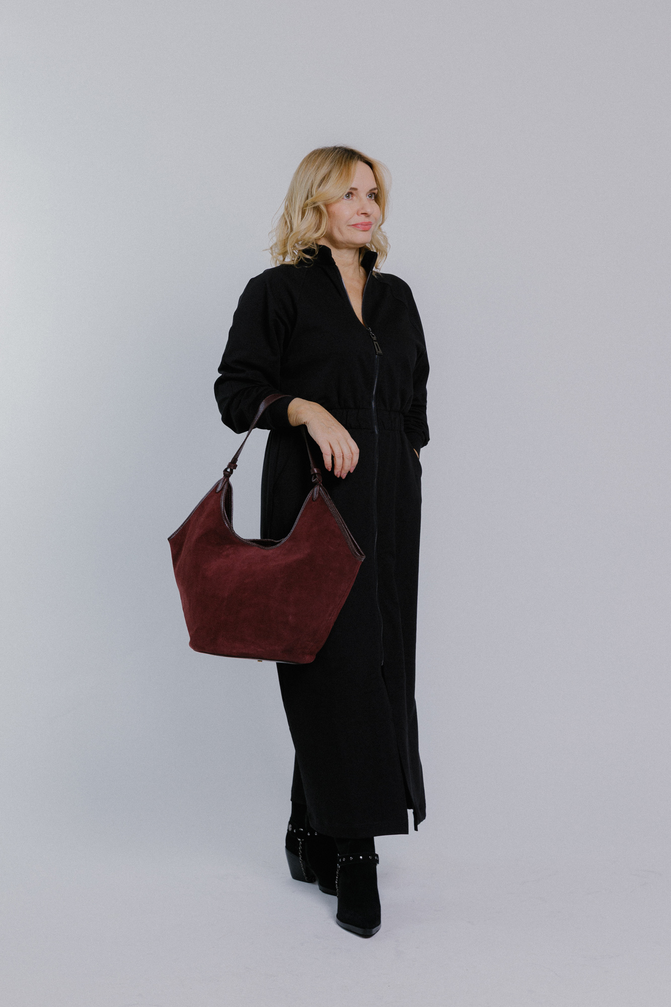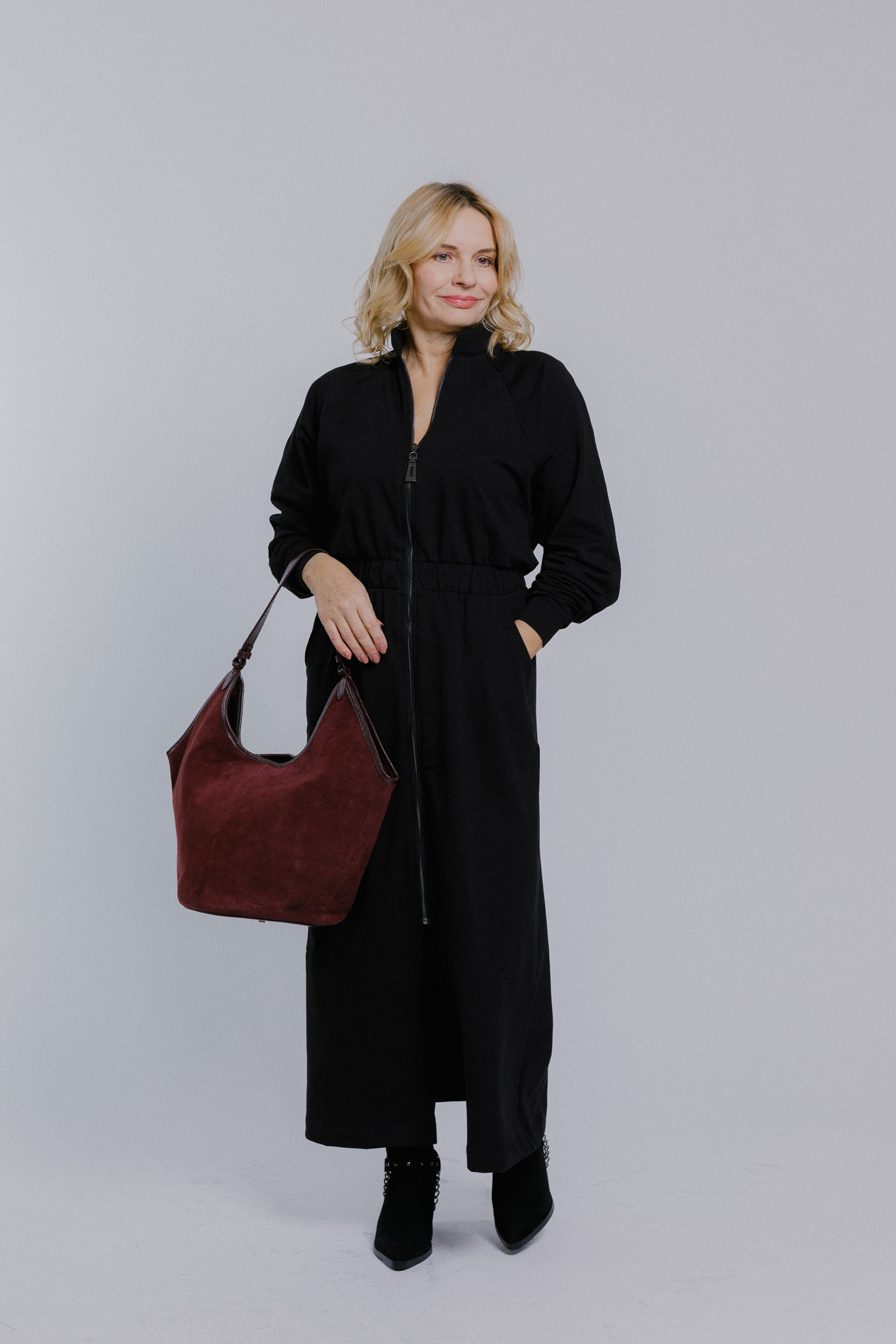 Míry modelky: prsa 90 cm; pas 70 cm; boky 95 cm; výška 165 cm. Modelka má na sobě velikost S