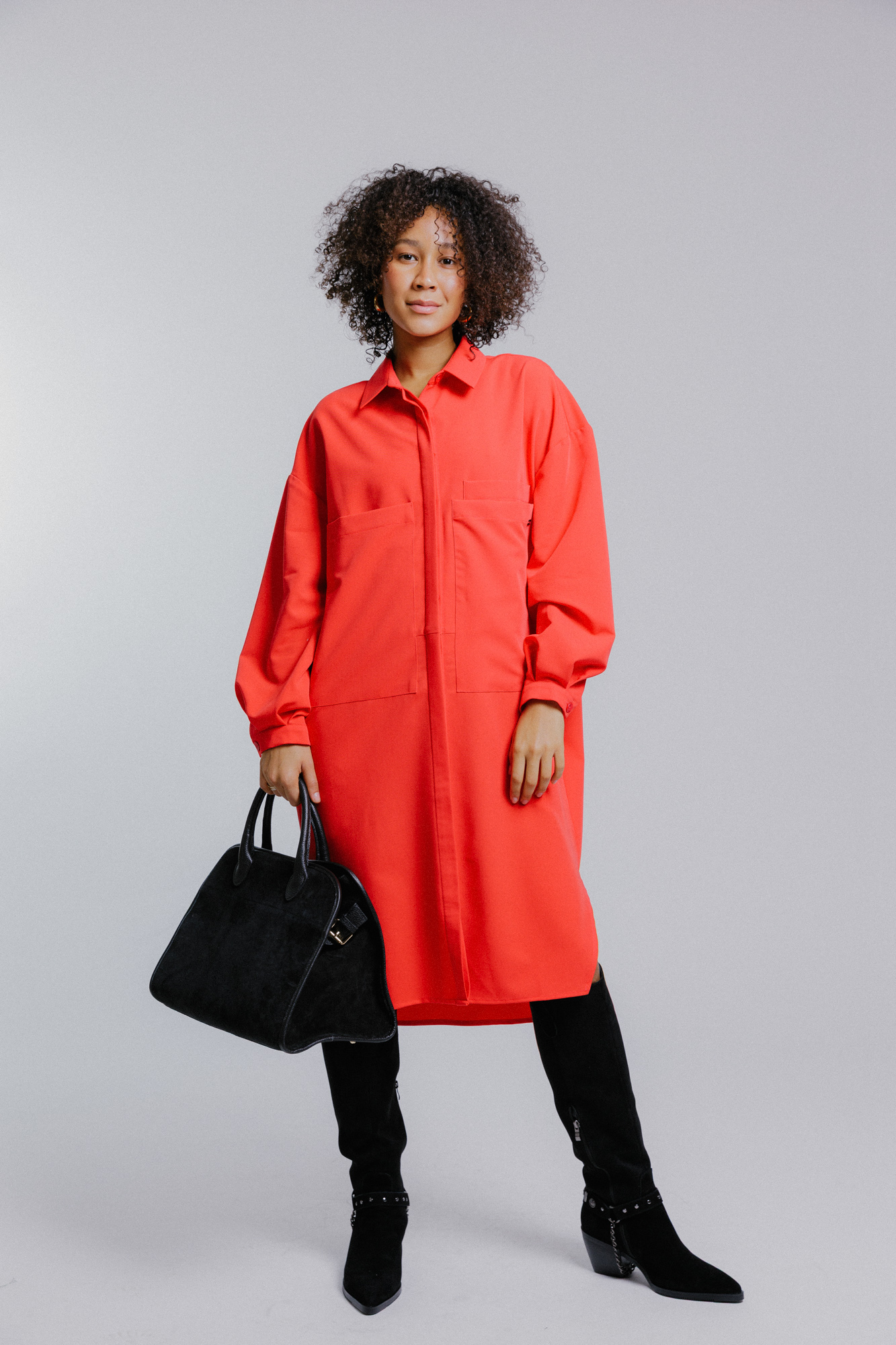 Míry modelky: prsa 85 cm; pas 65 cm; boky 95 cm; výška 173 cm. Modelka má na sobě velikost S.