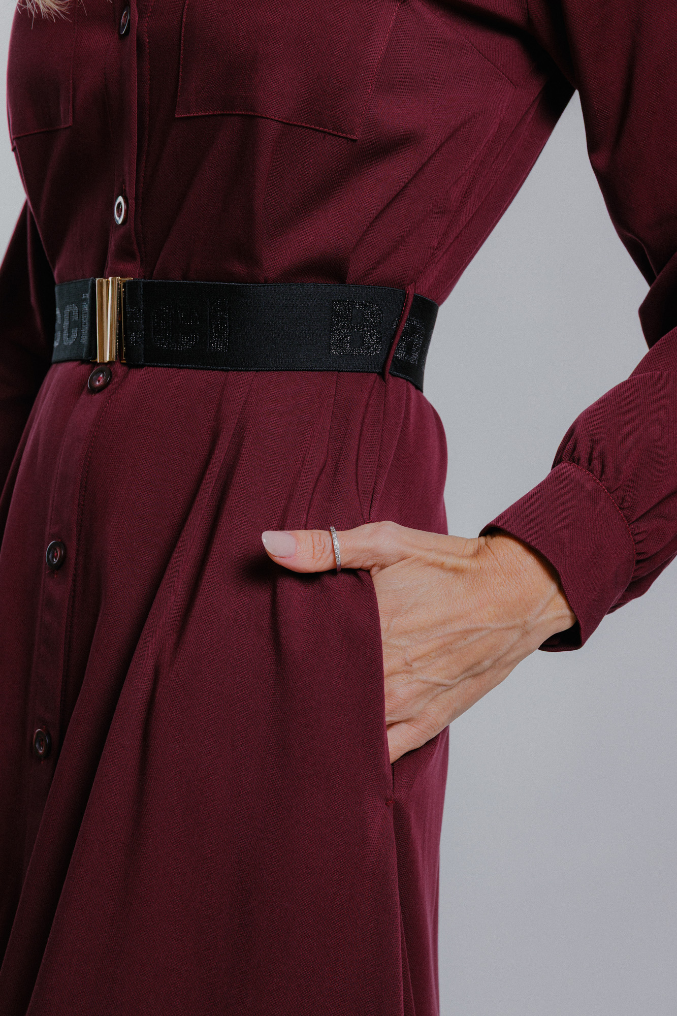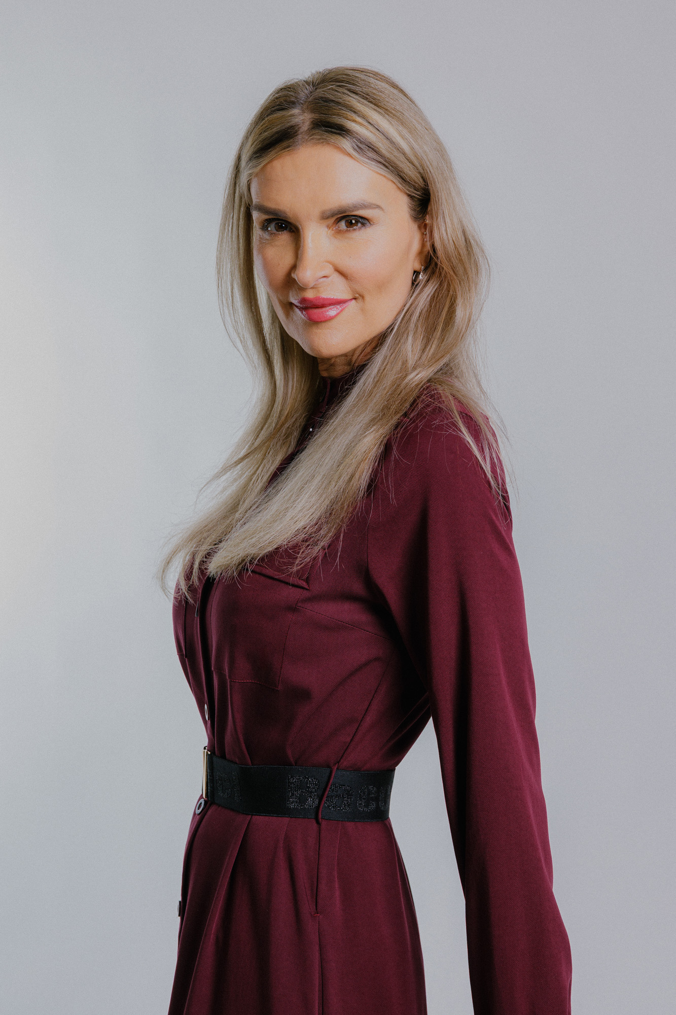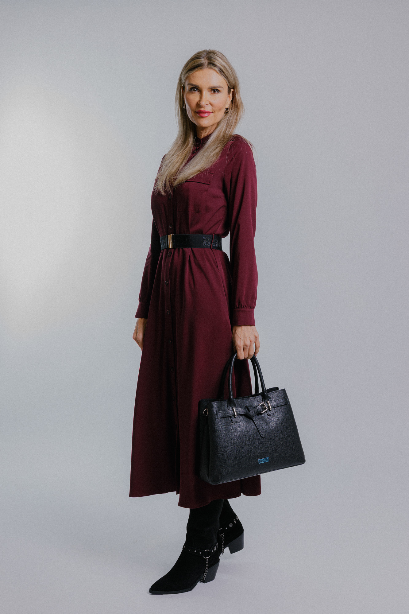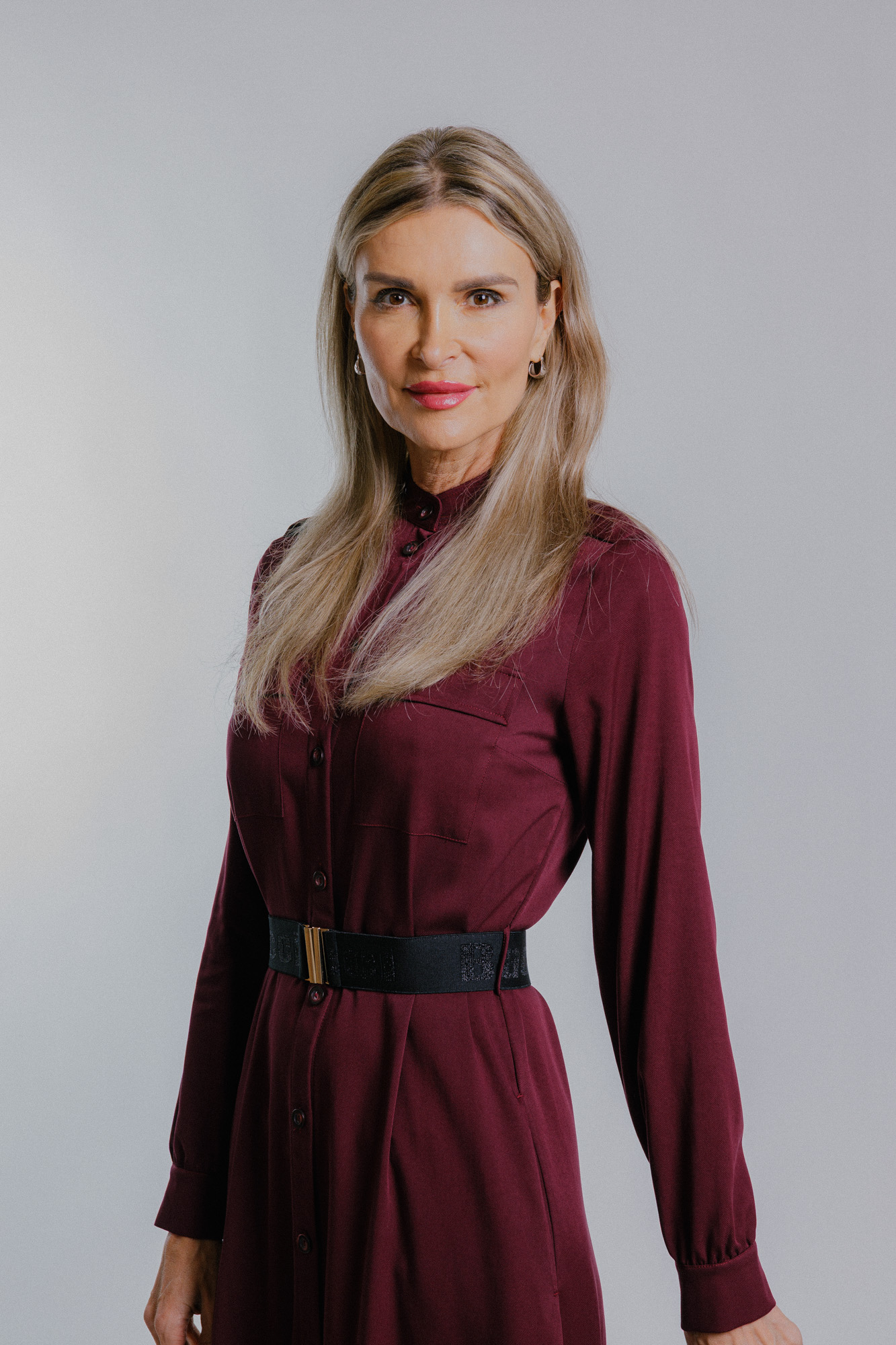 Míry modelky: prsa 92 cm; pas 60 cm; boky 86 cm; výška 183 cm. Modelka má na sobě velikost S.