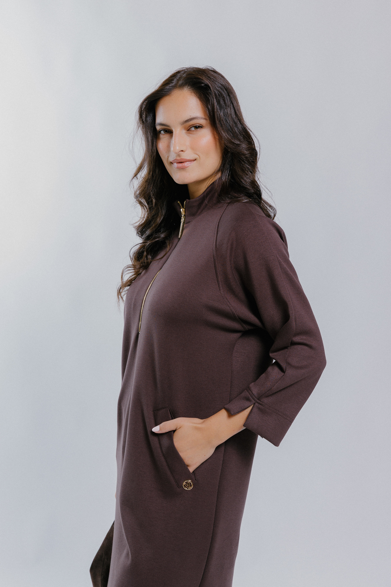 Míry modelky: prsa 85 cm; pas 65 cm; boky 92 cm; výška 169 cm. Modelka má na sobě velikost XS.