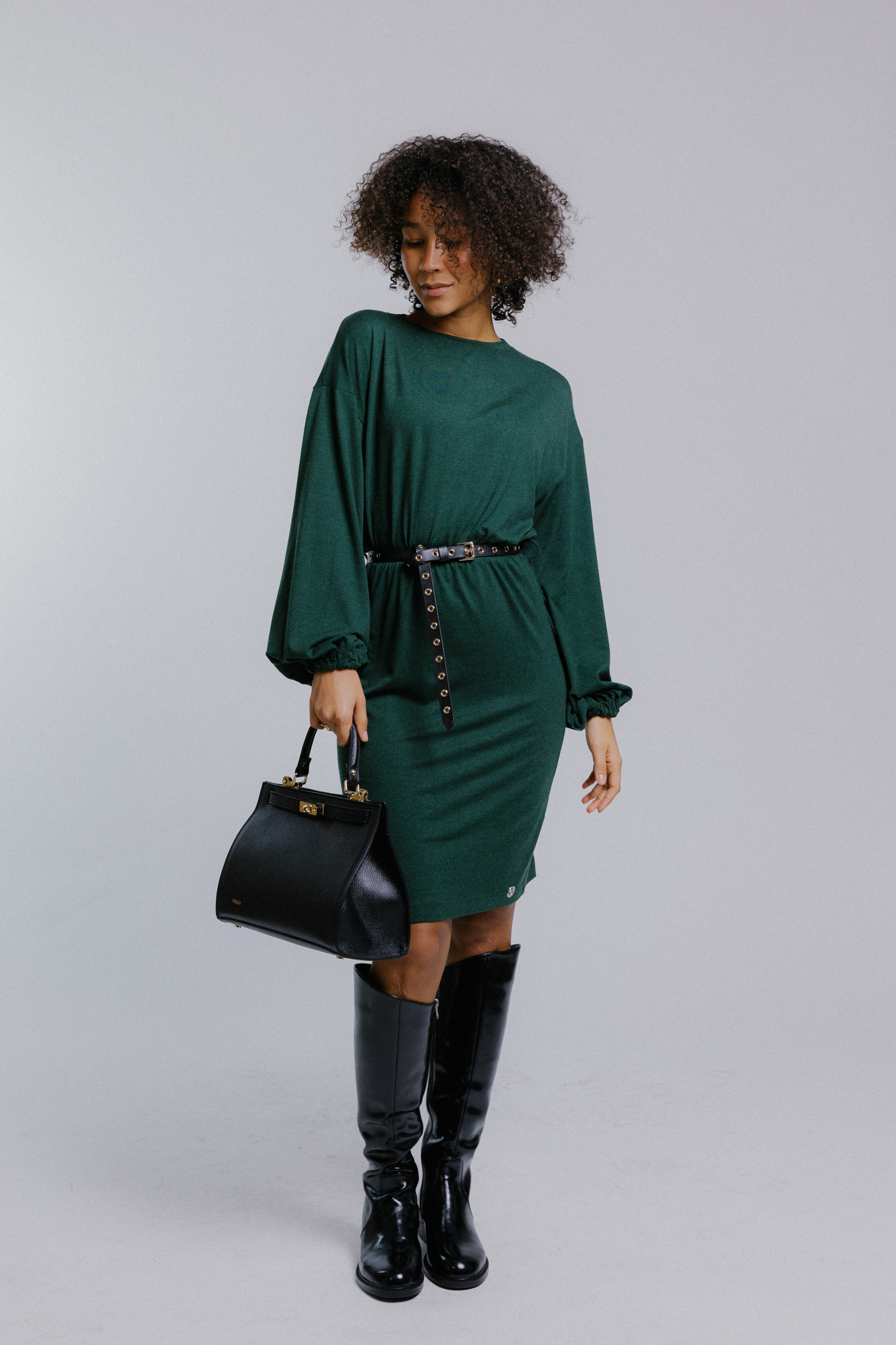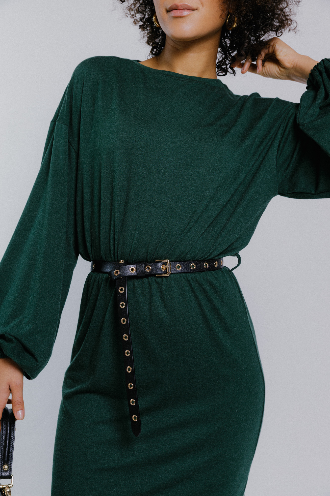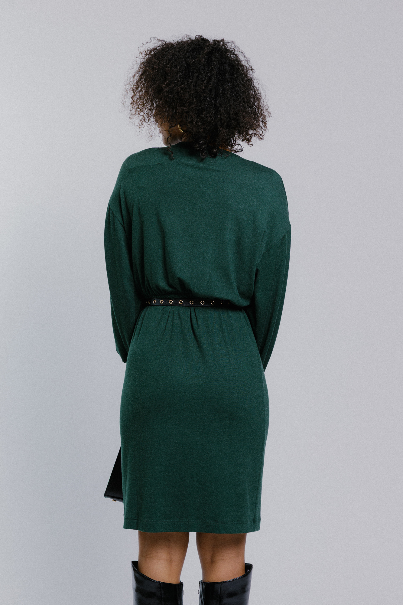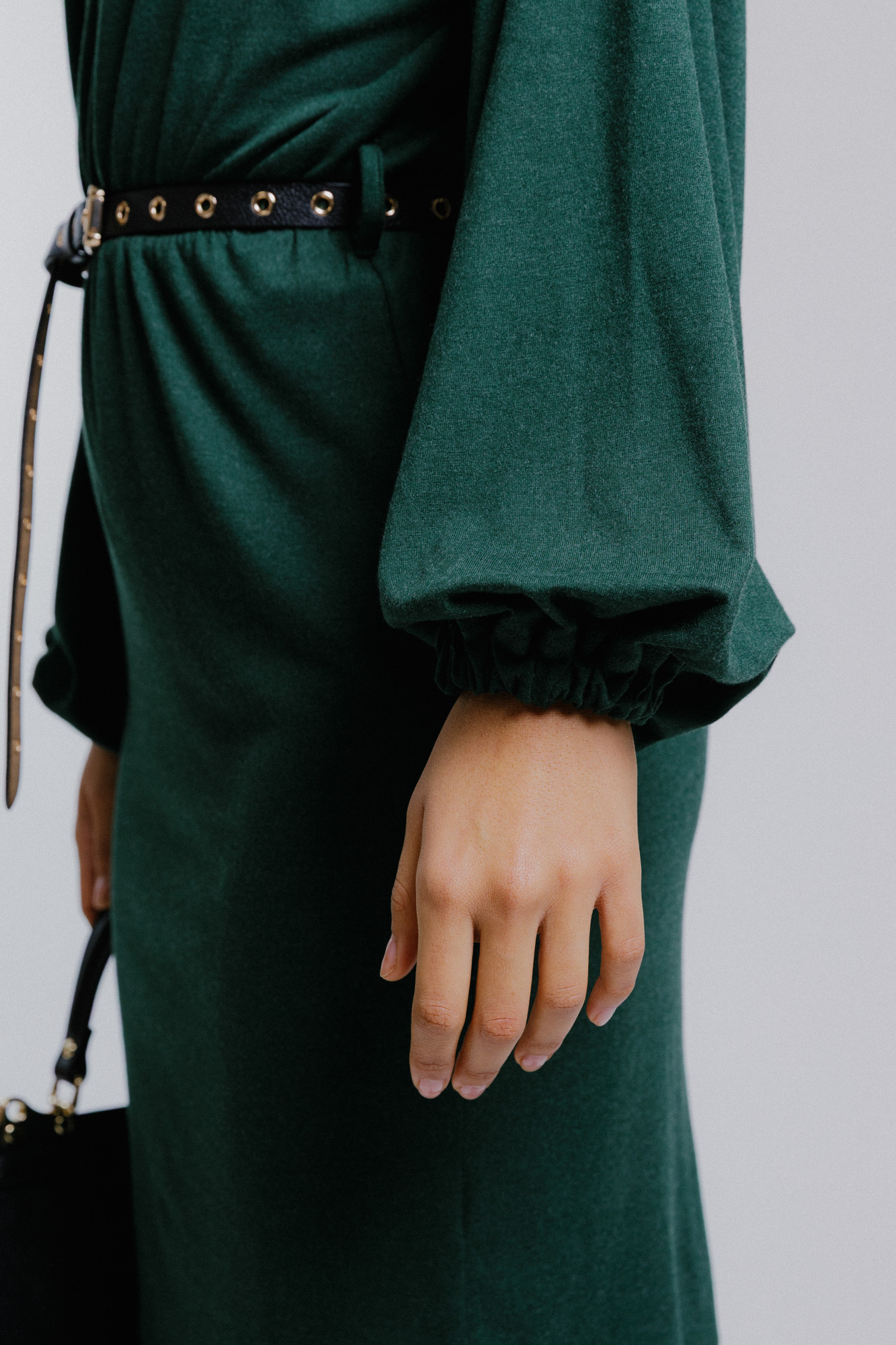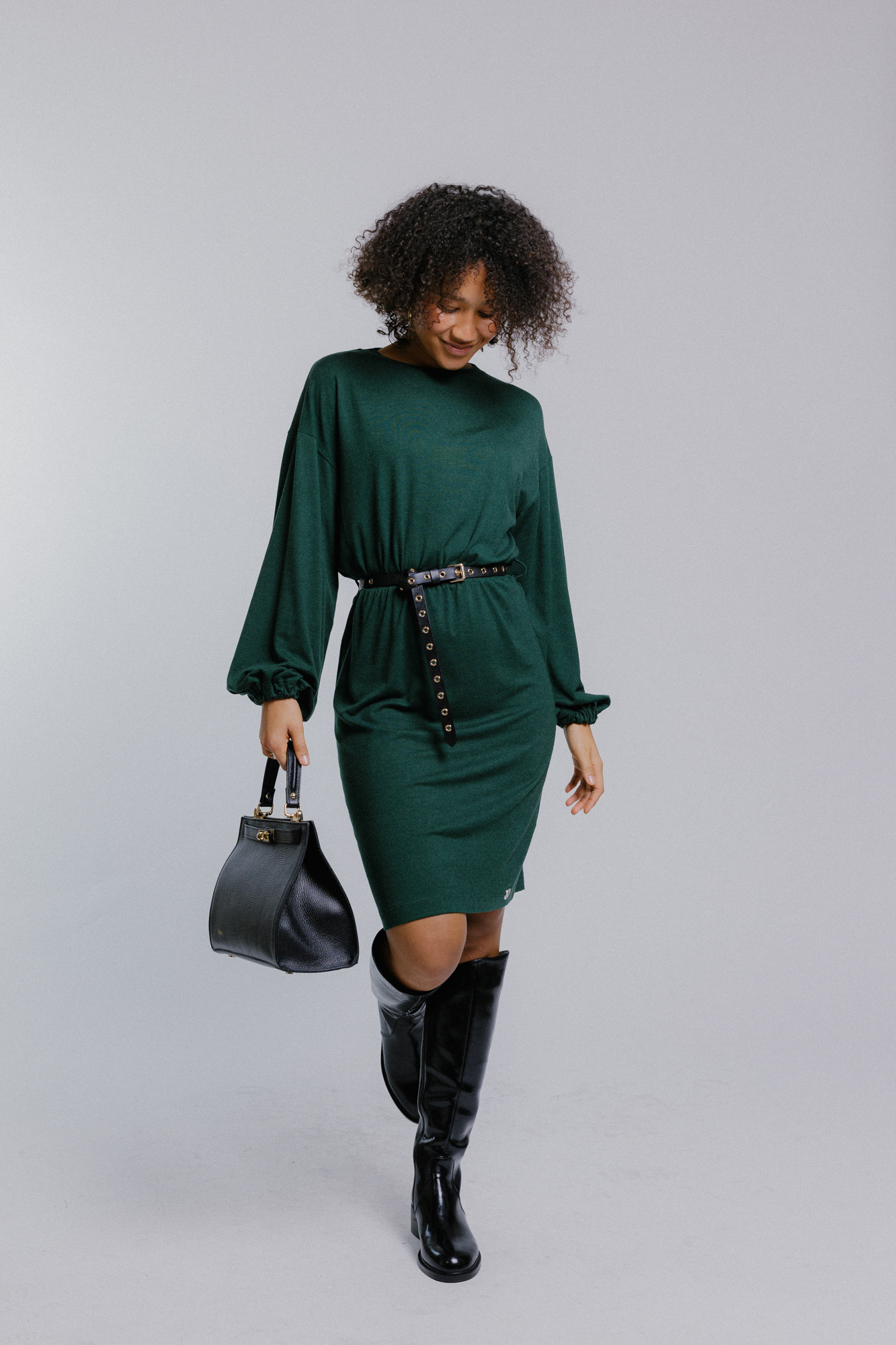 Míry modelky: prsa 89 cm; pas 60 cm; boky 85 cm; výška 175 cm. Modelka má na sobě velikost XS.