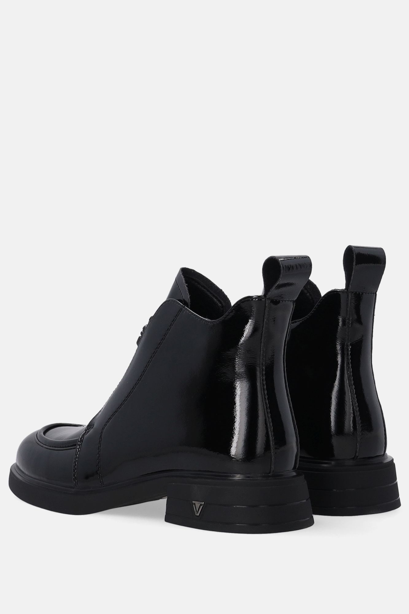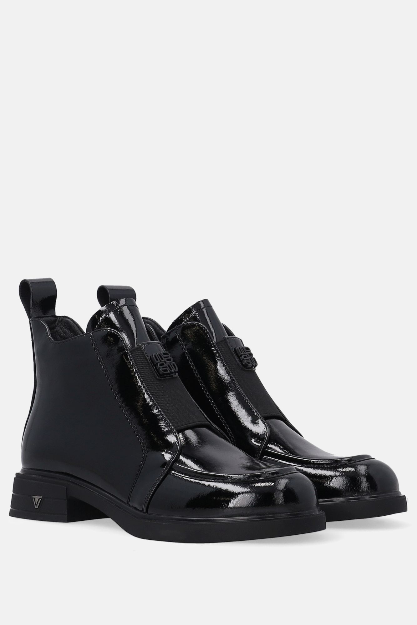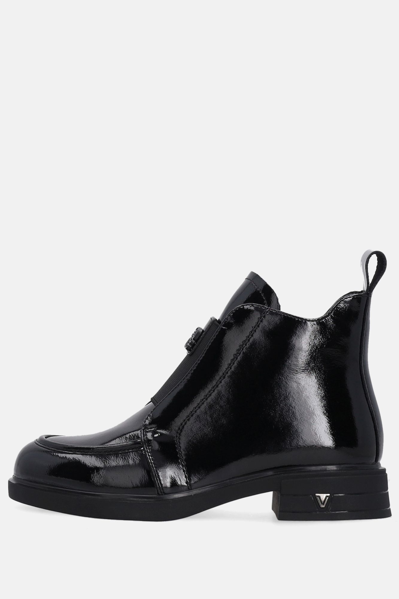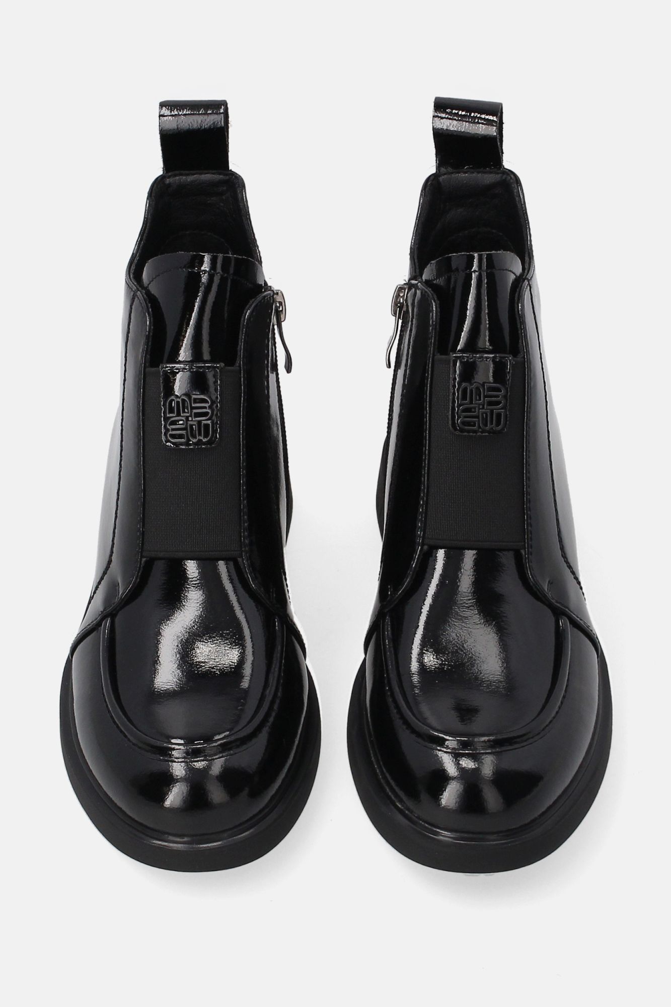 Černé dámské kotníkové boty z lakované kůže s elastickou vsadkou