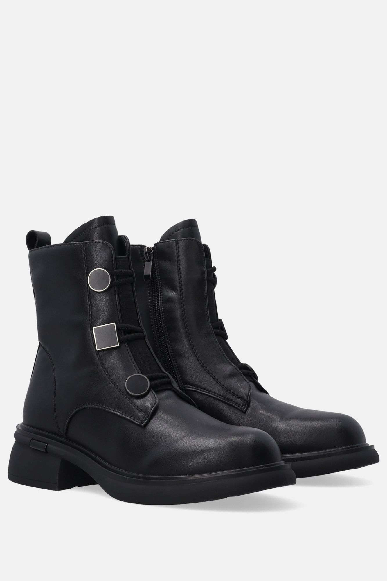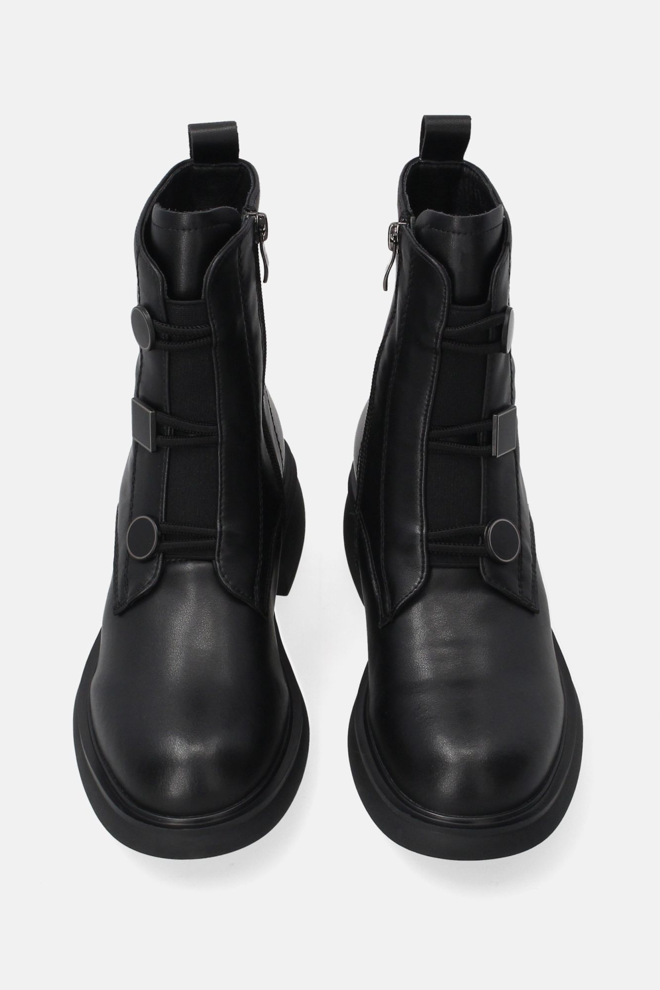 Černá kožená kotníková obuv s ozdobnými knoflíky