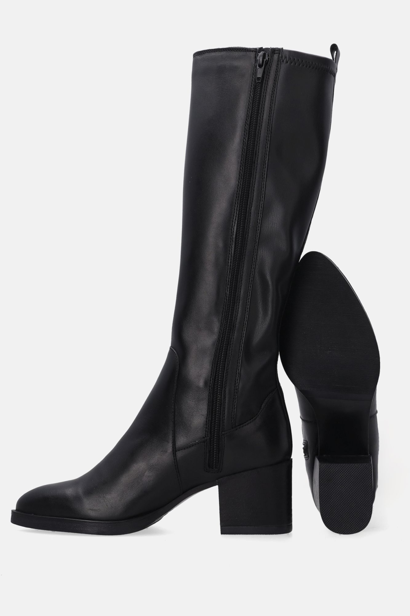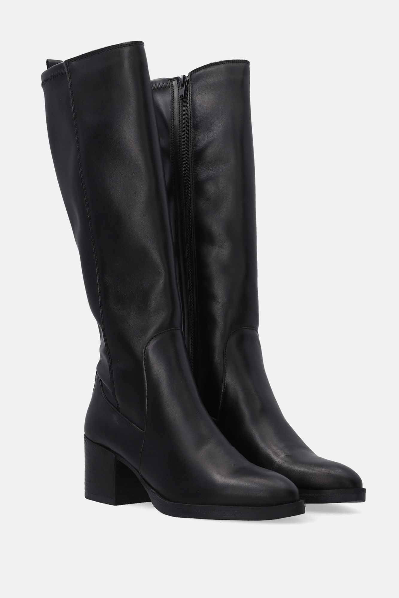 Černé kožené kozačky na podpatku