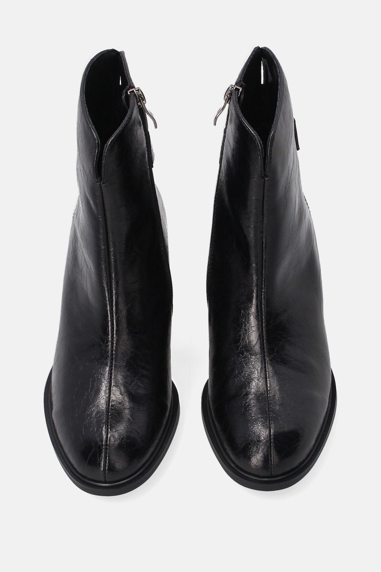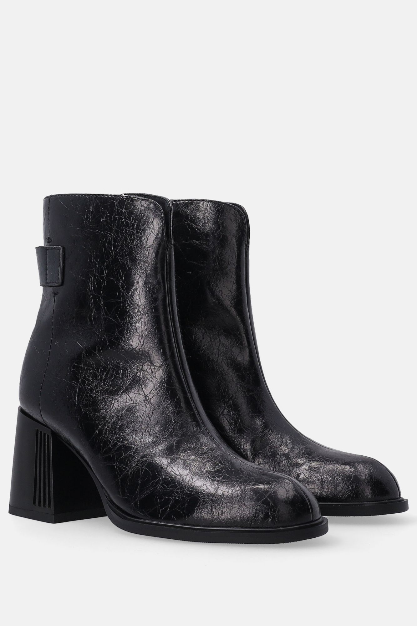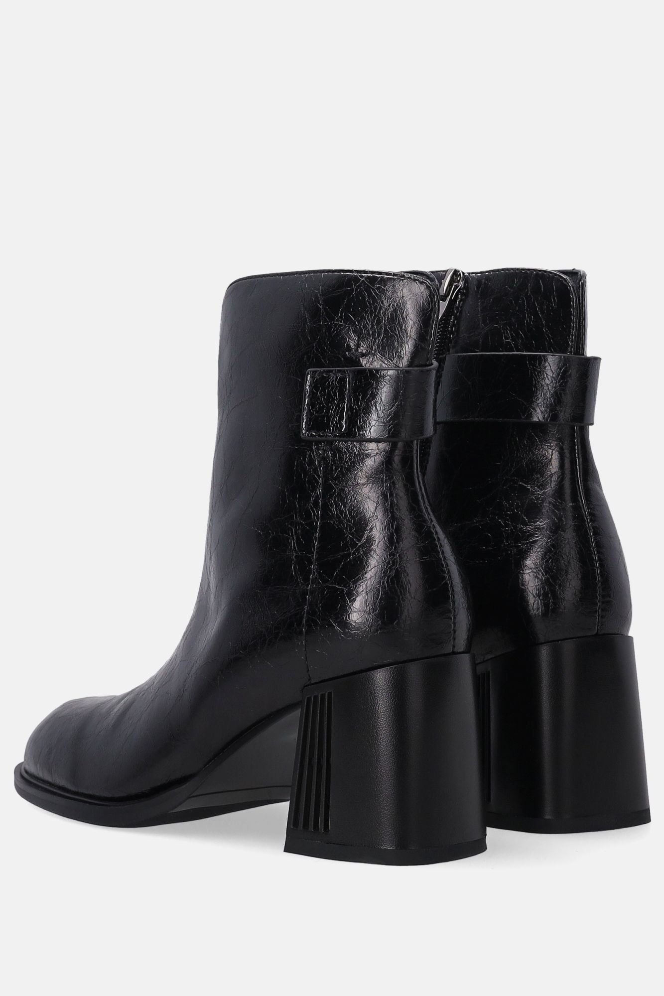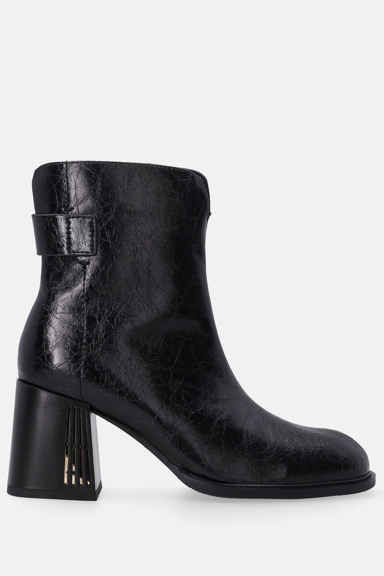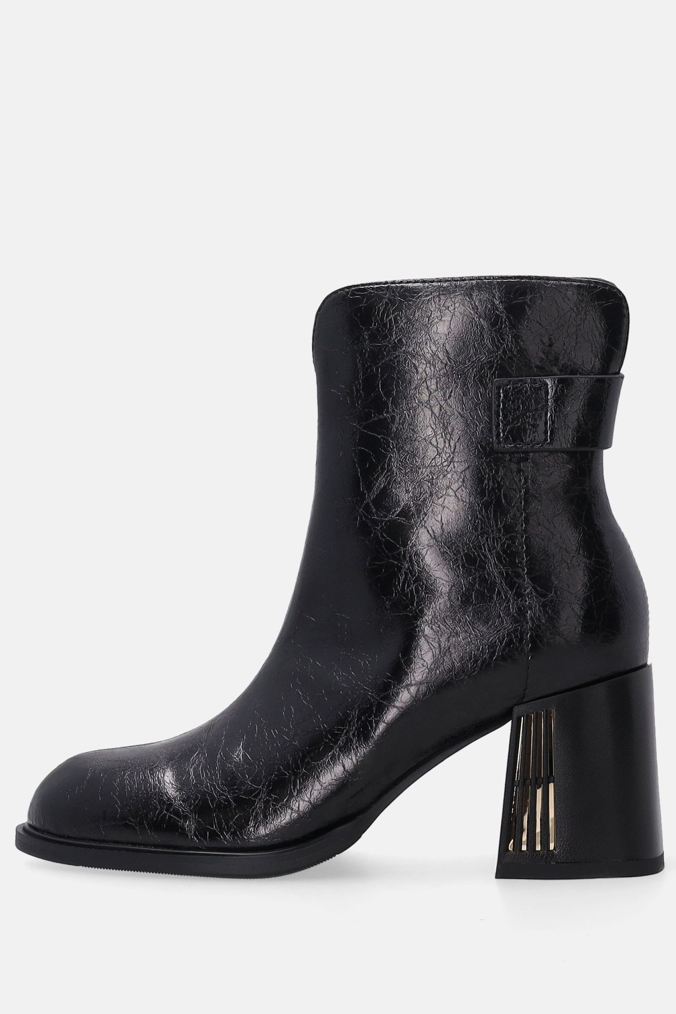 Černé lakované kotníkové boty s ozdobným podpatkem