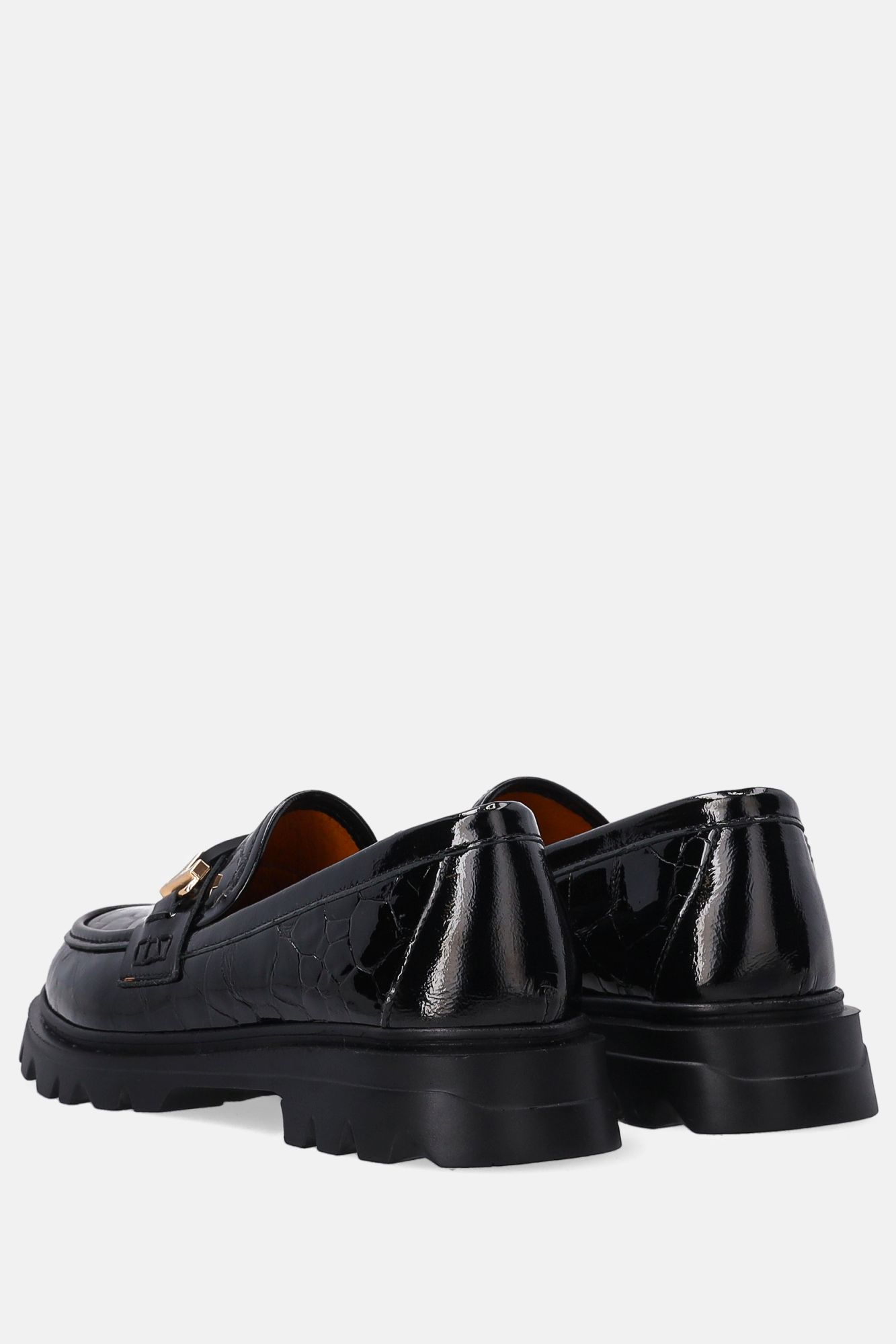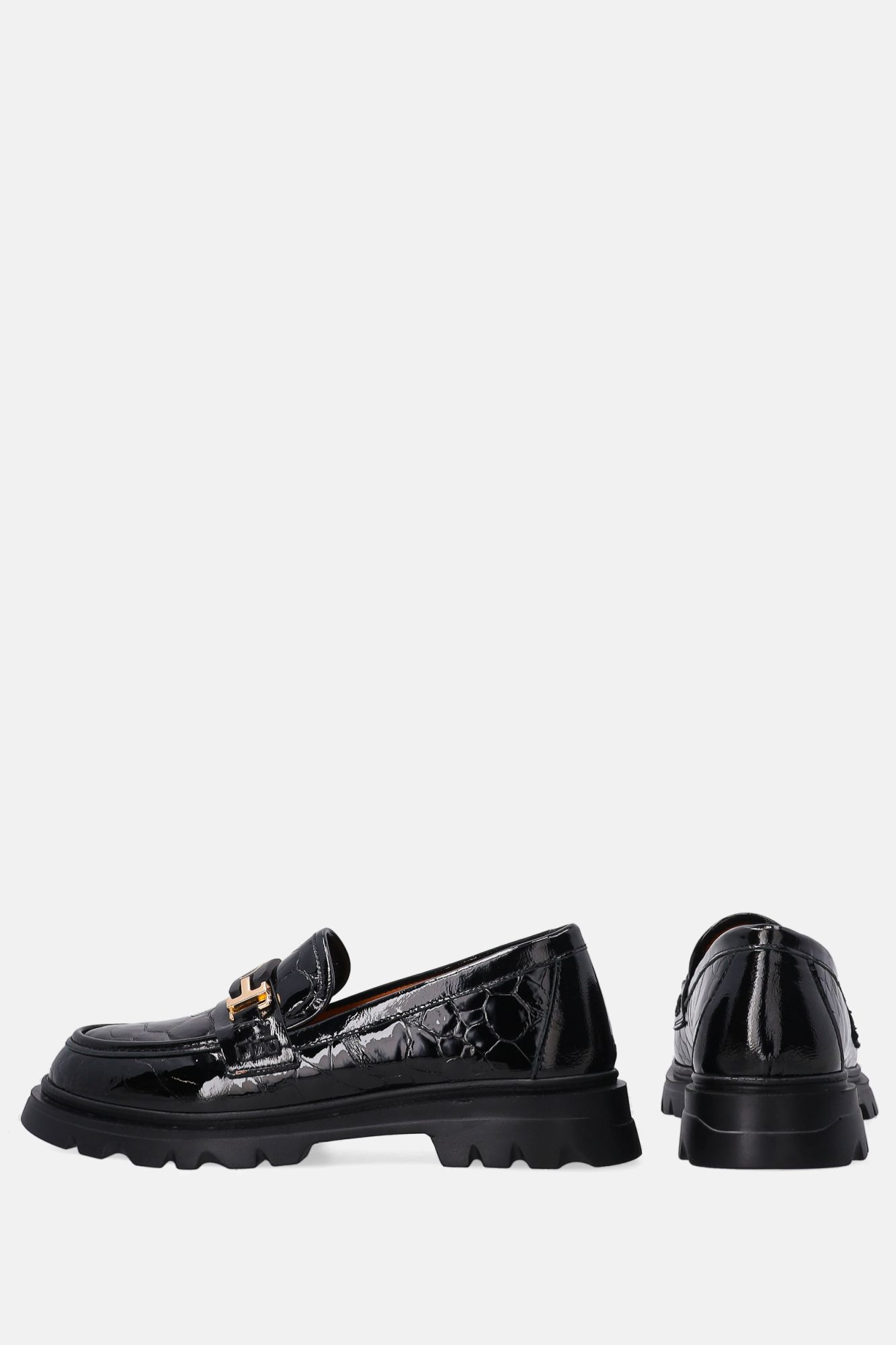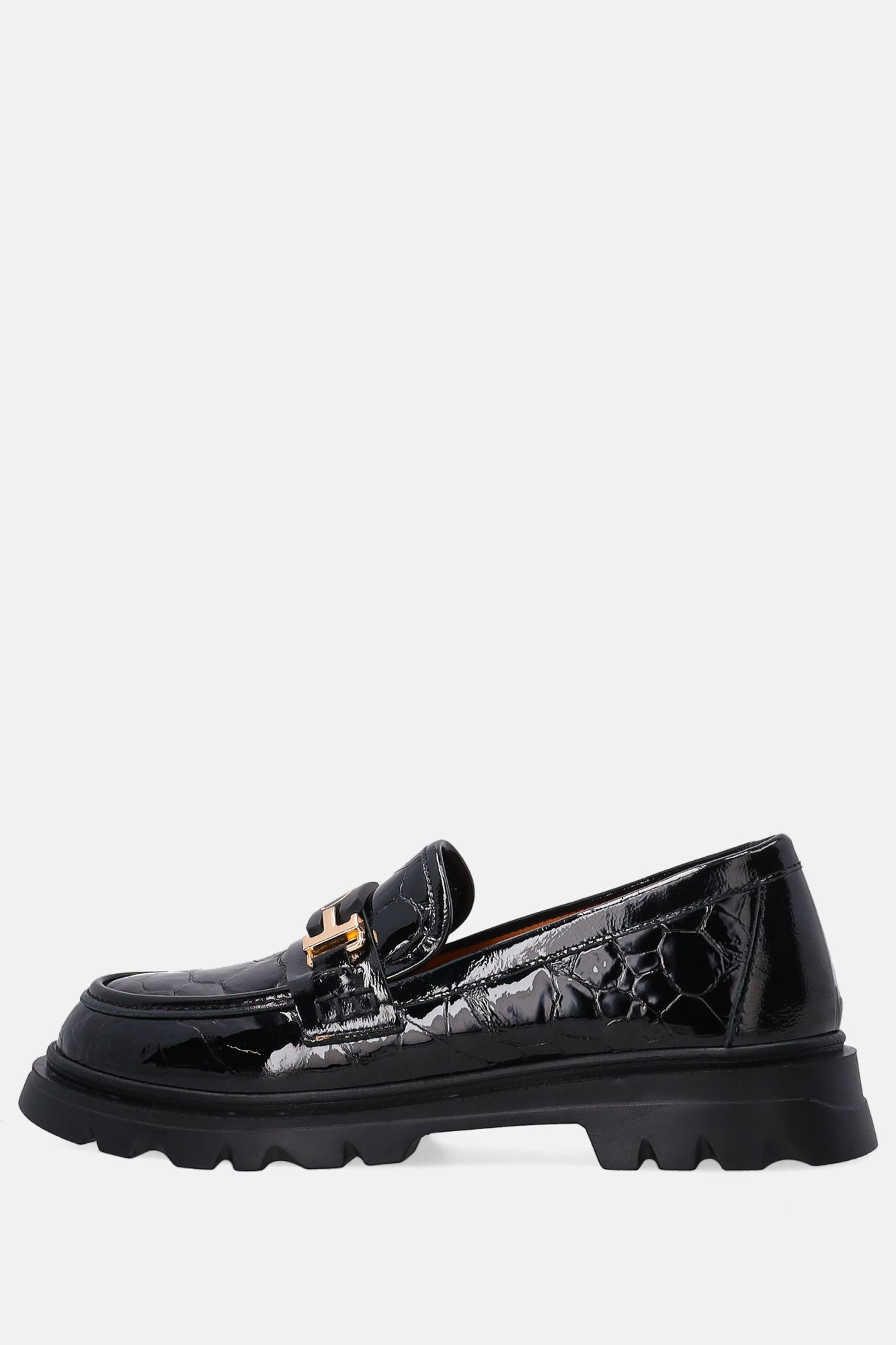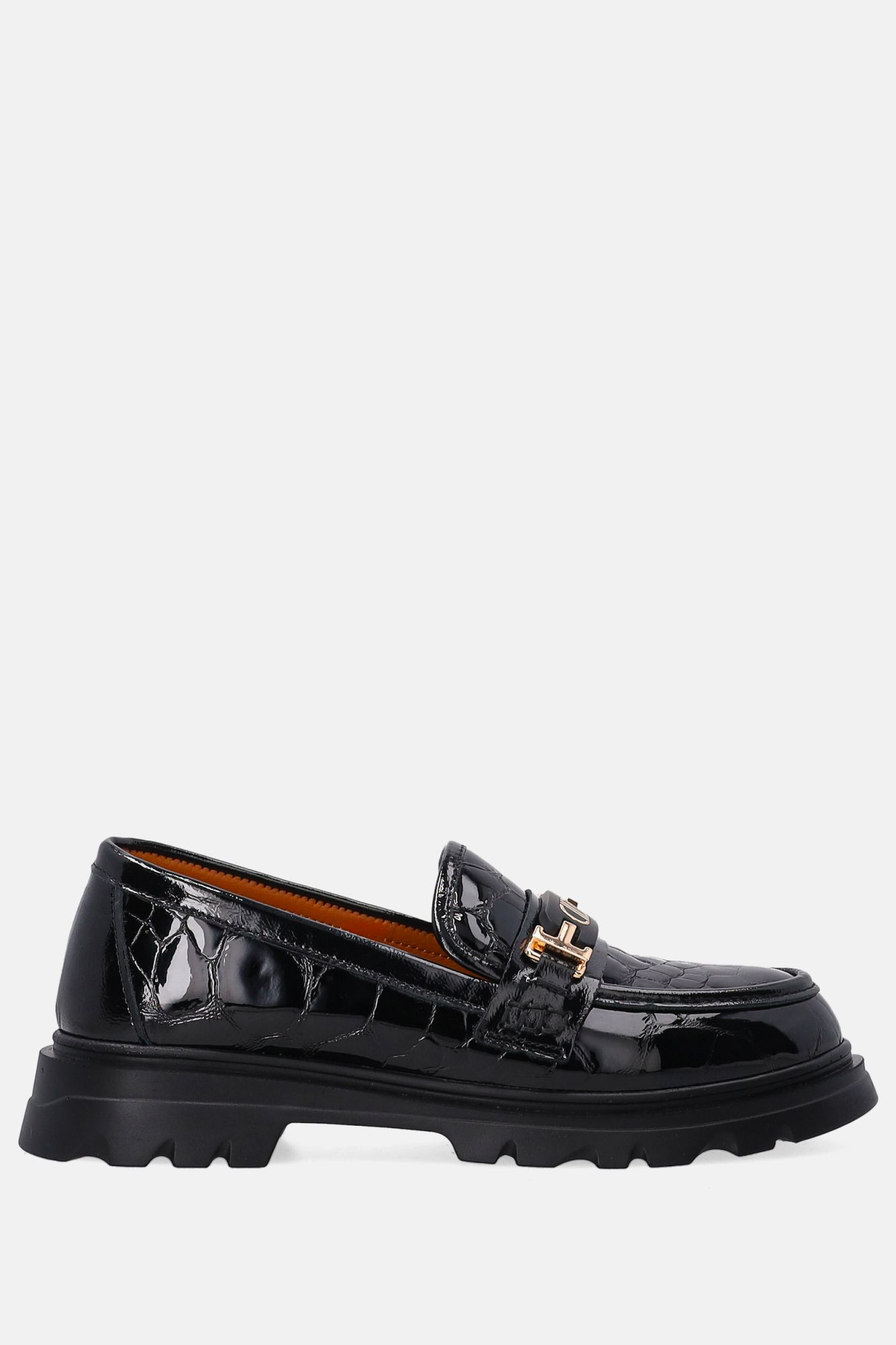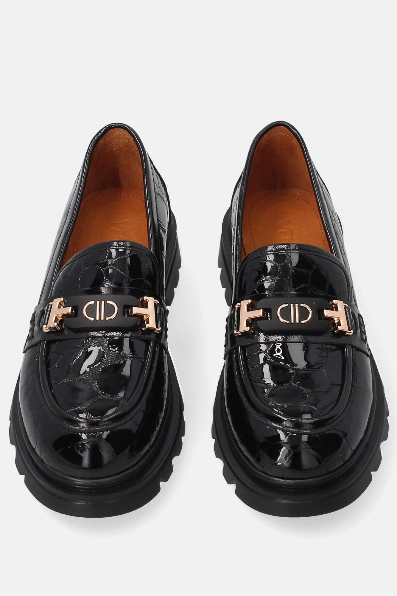 Černé lakované mokasíny s reliéfním potiskem - 39