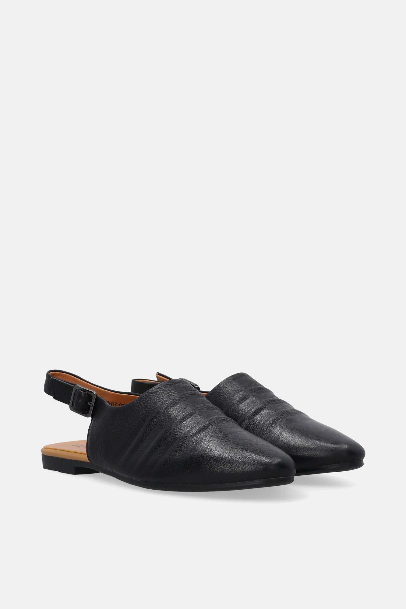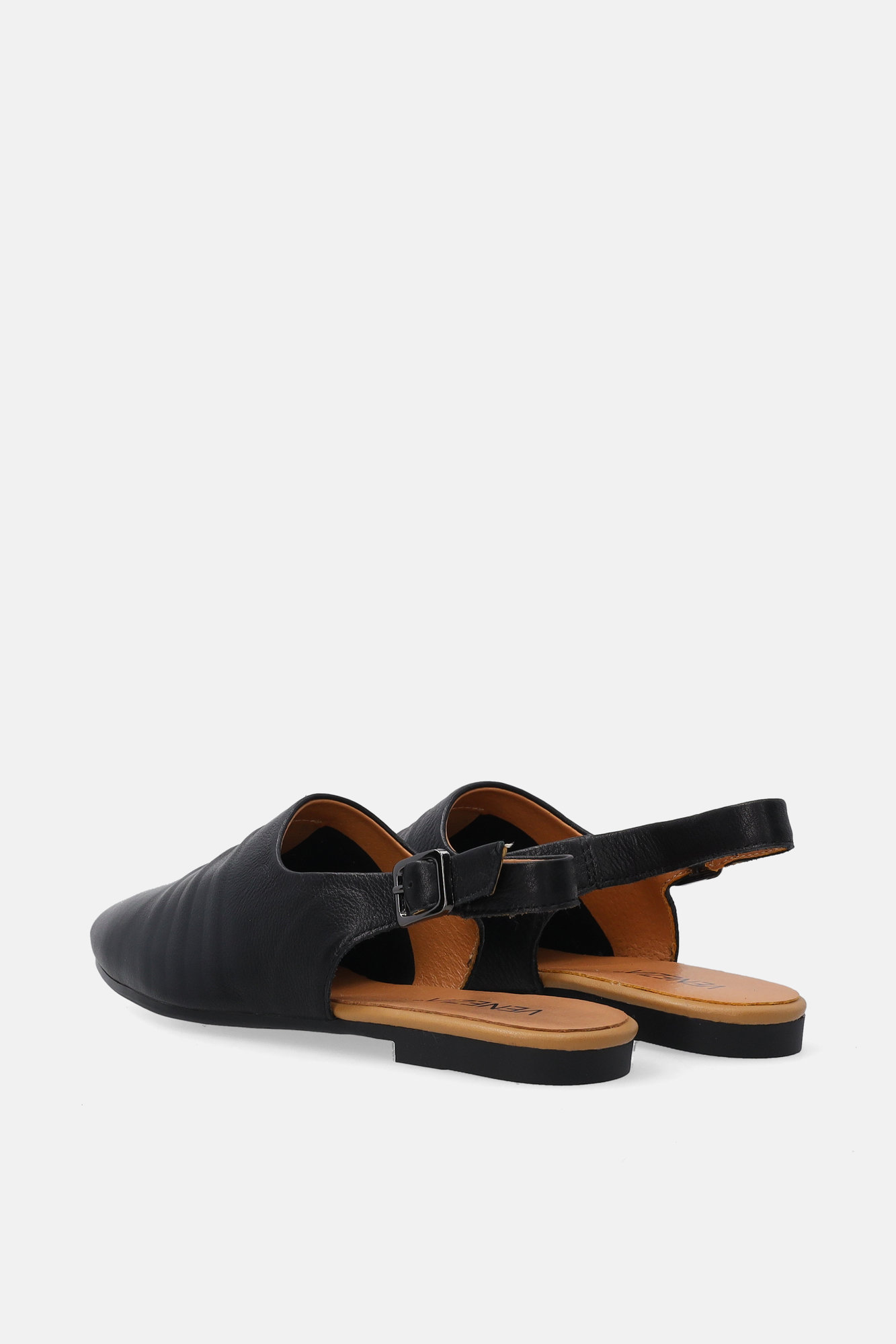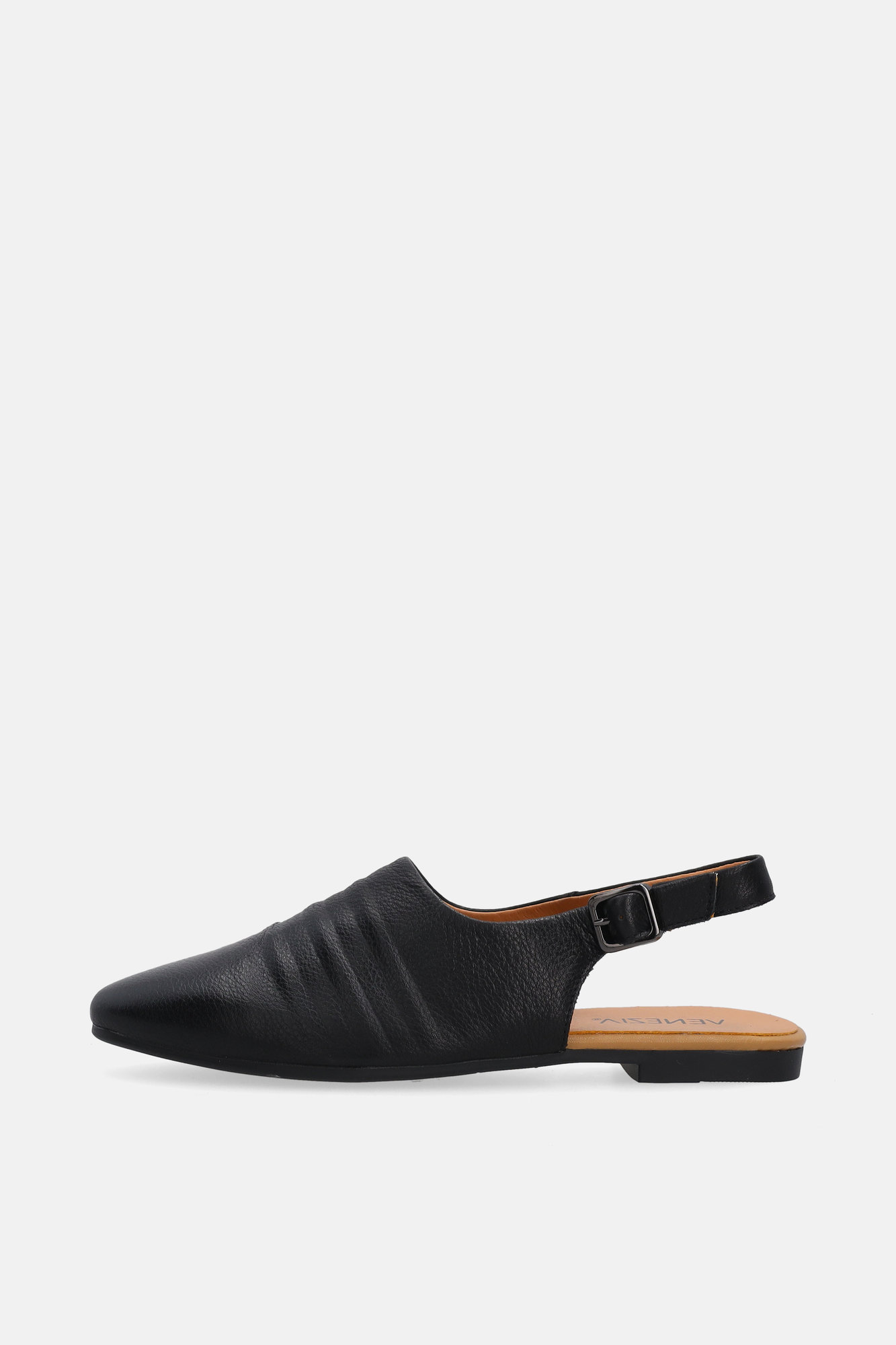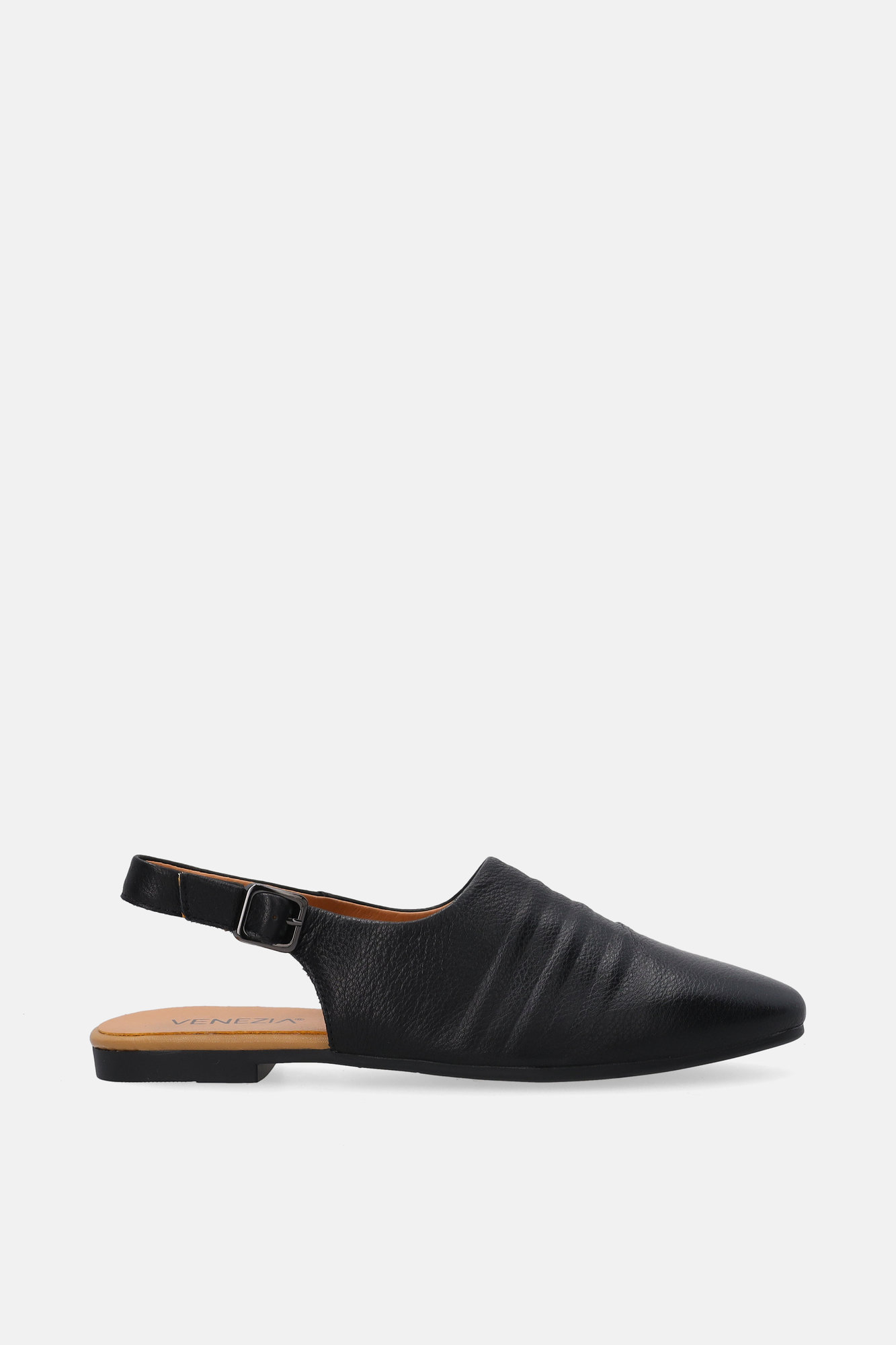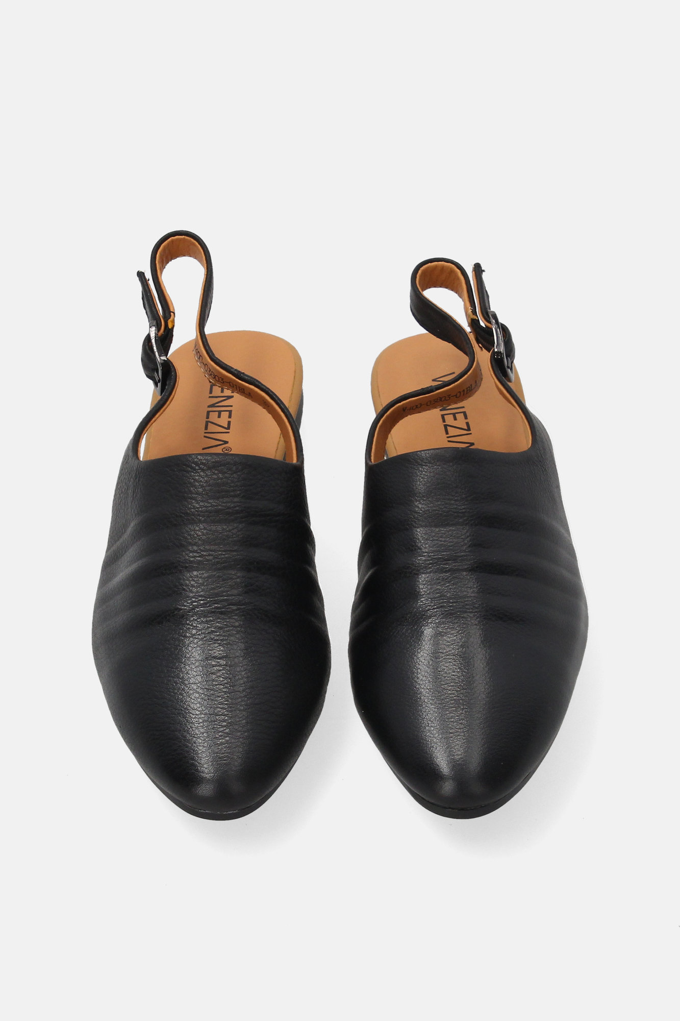 Černé lodičky z pravé kůže s otevřeným podpatkem - 36