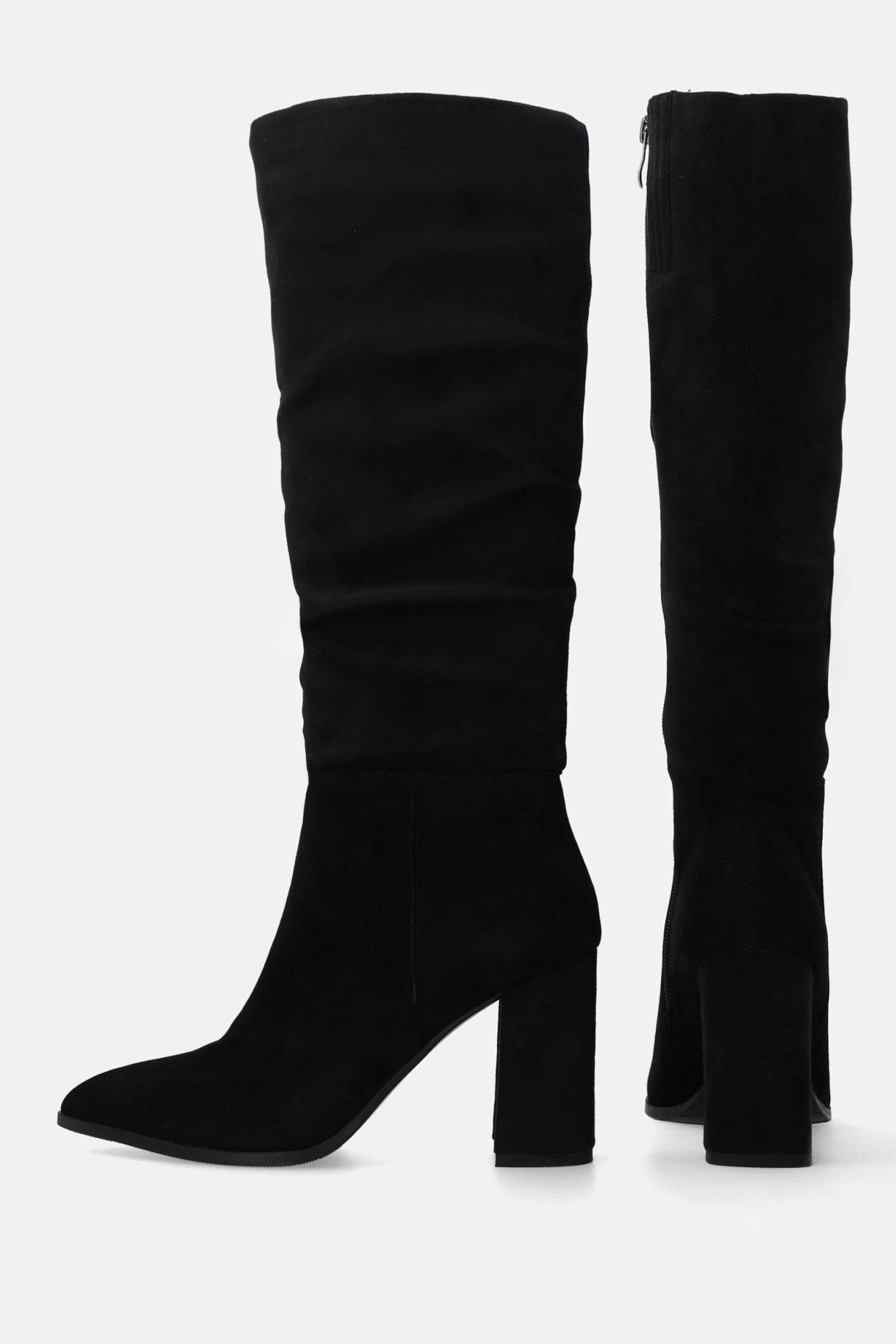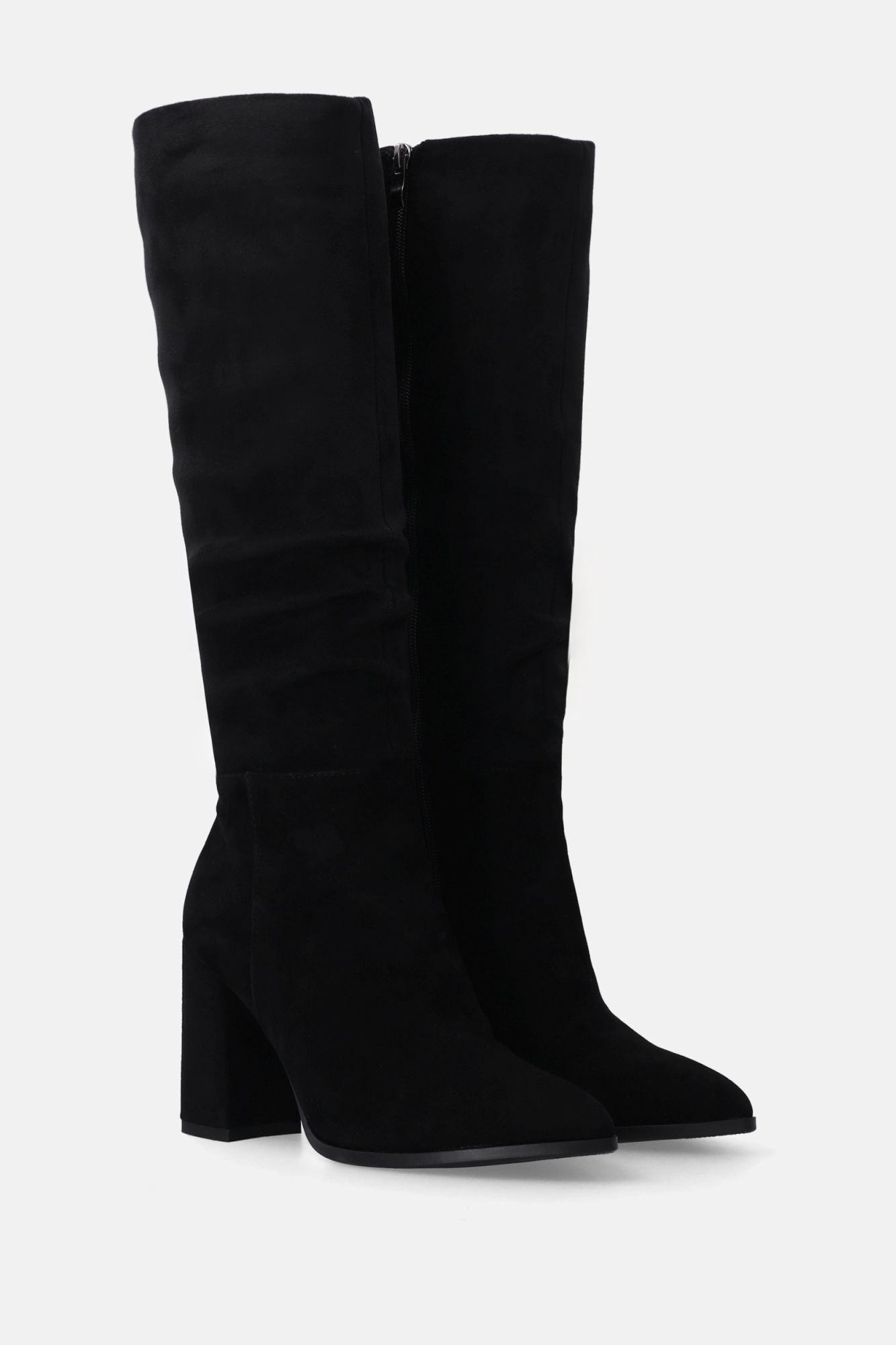 Černé semišové kozačky na podpatku