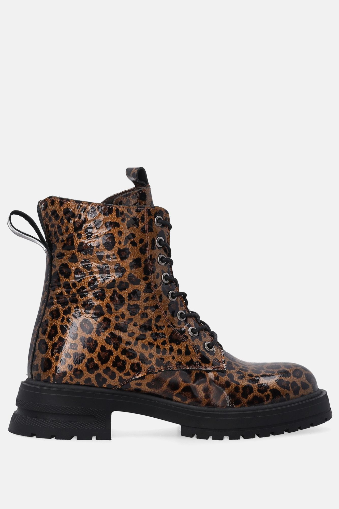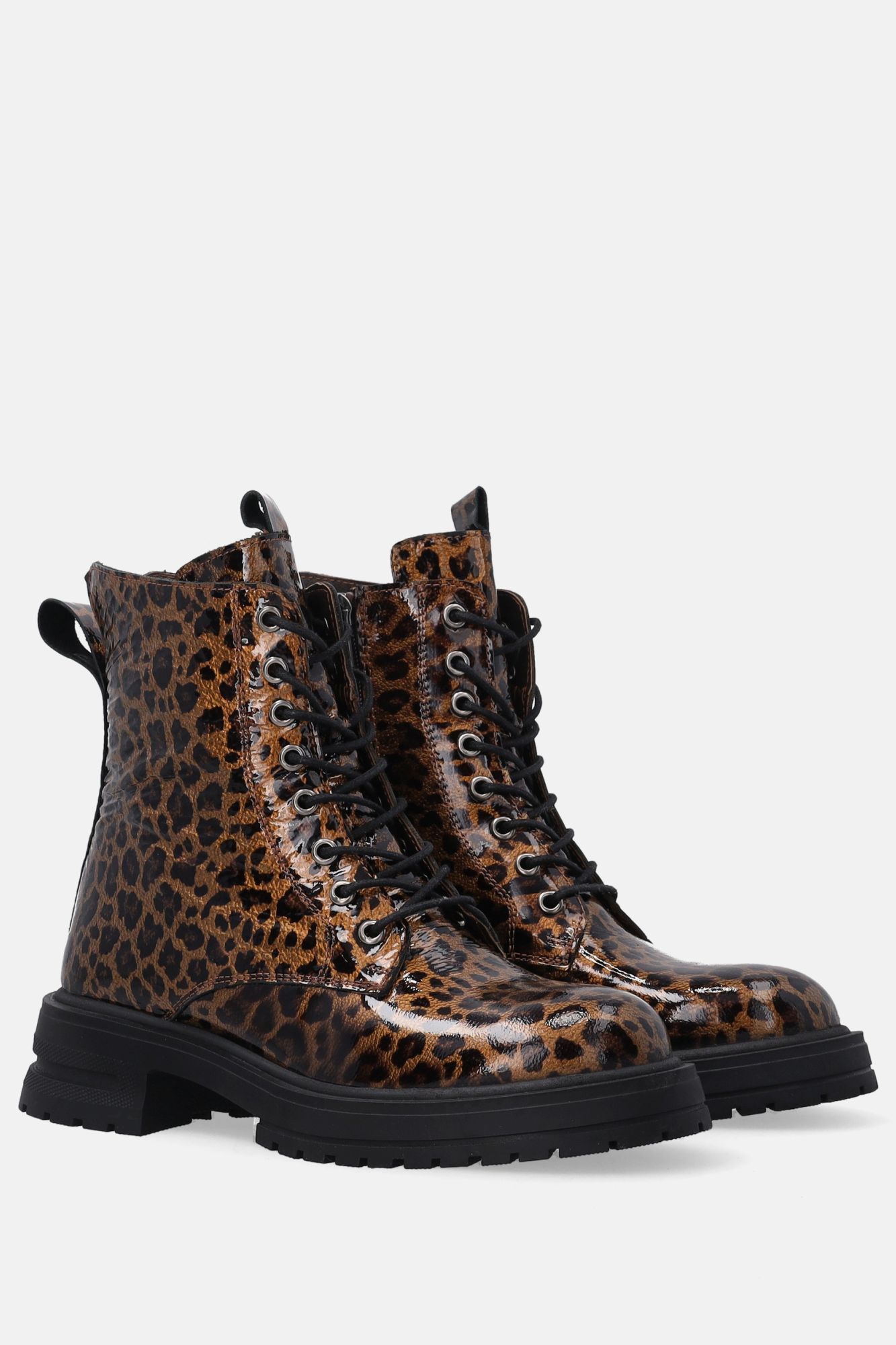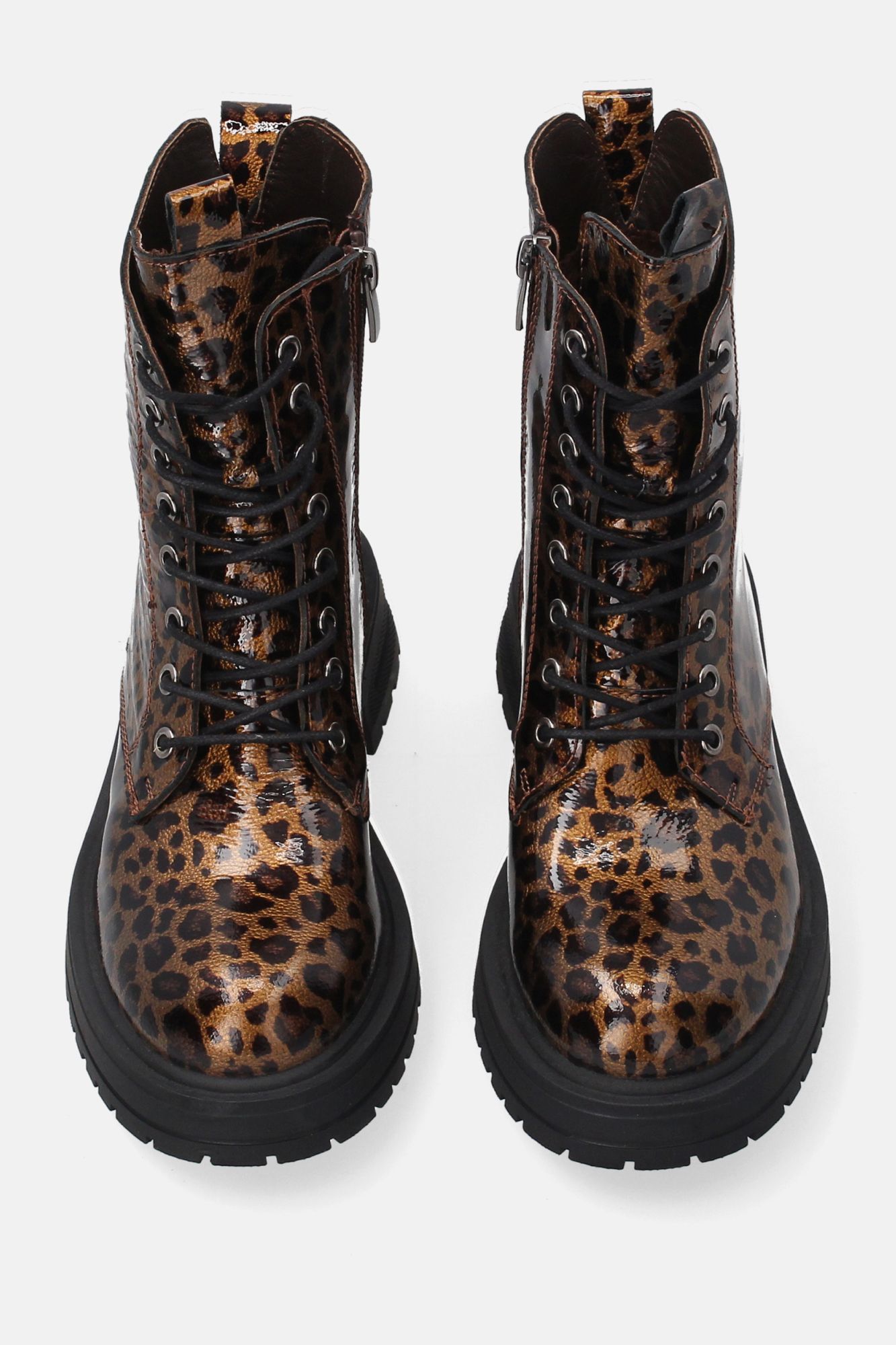 Dámská lakovaná kotníková obuv s leopardím vzorem