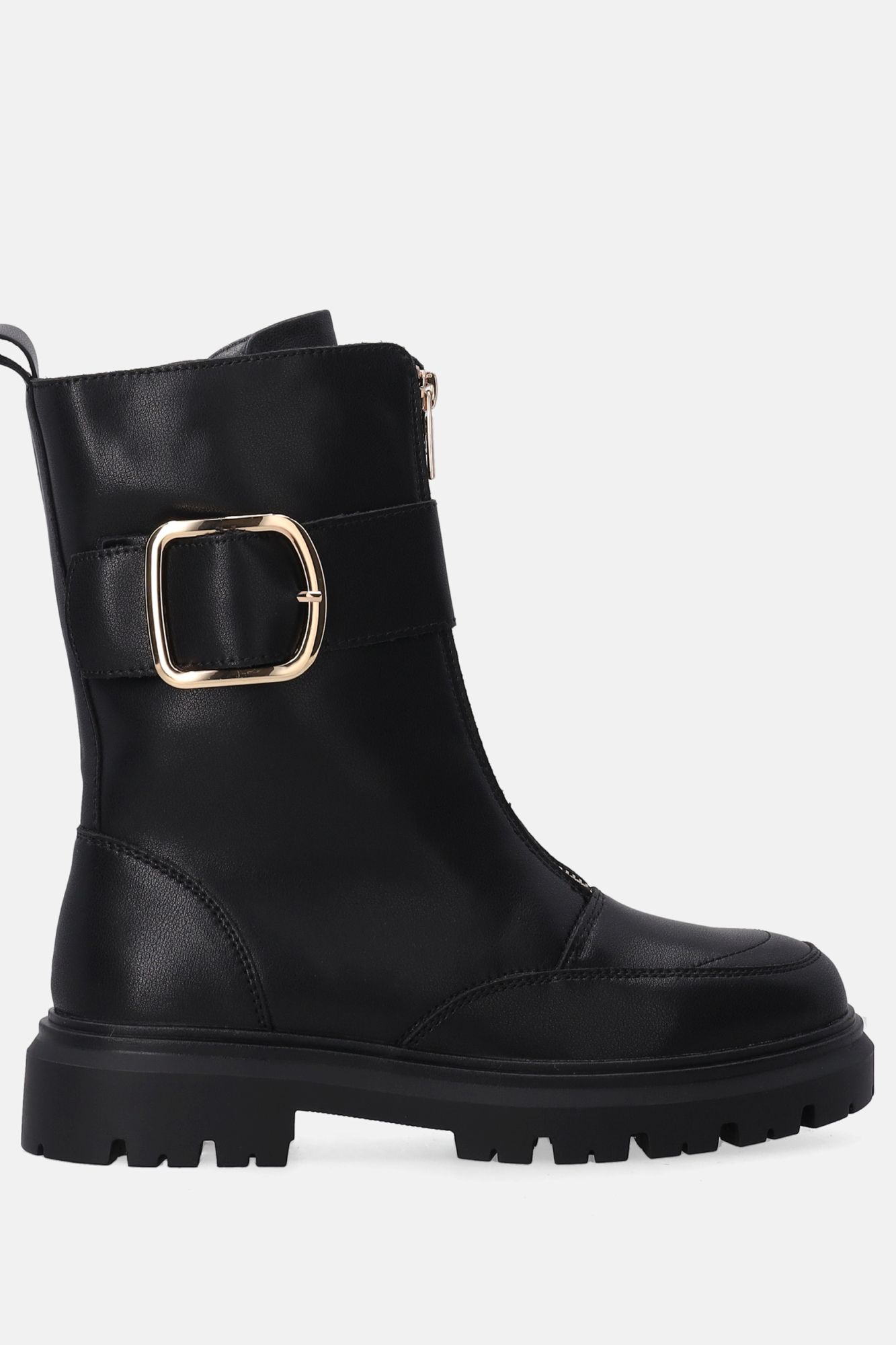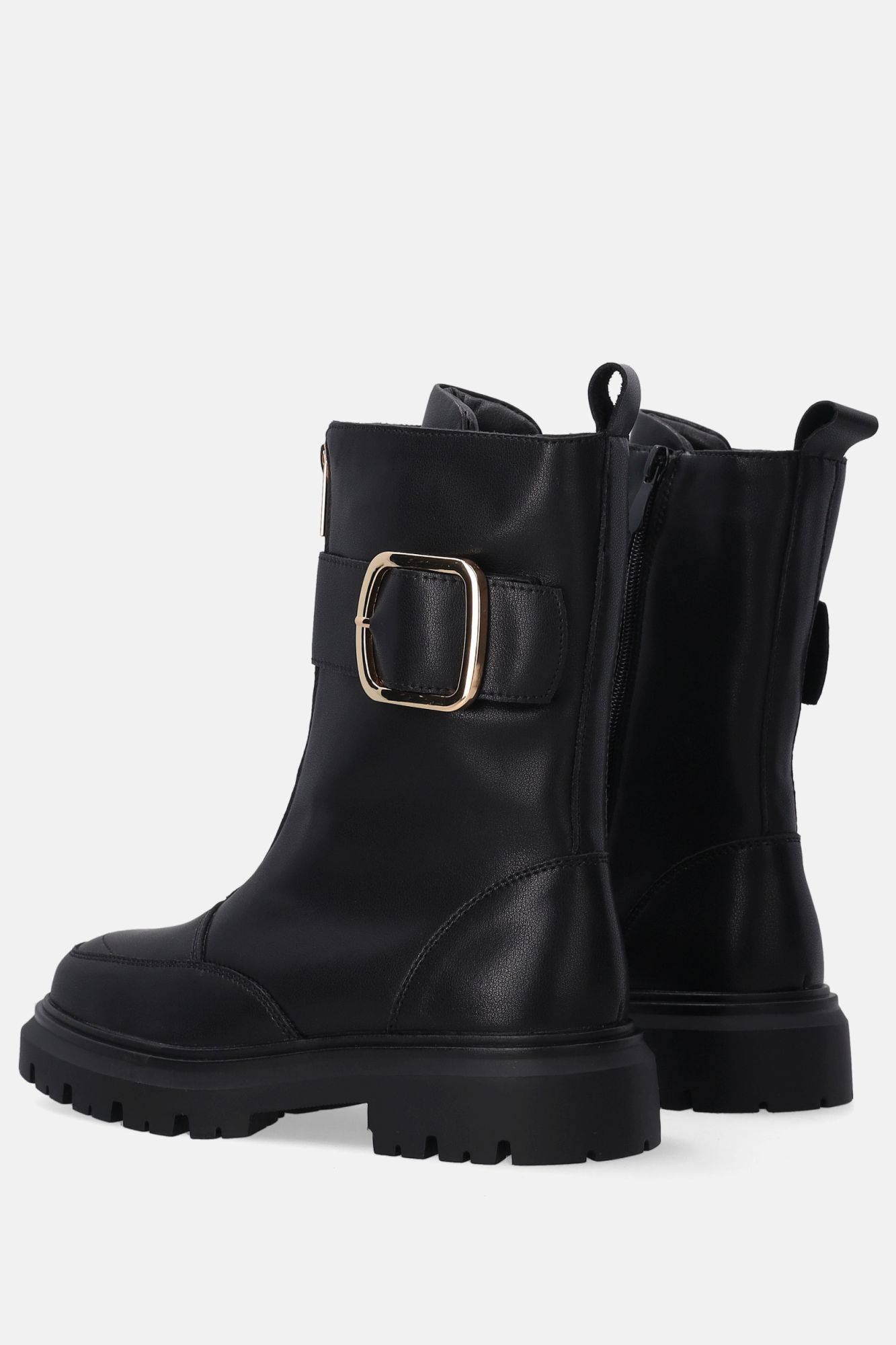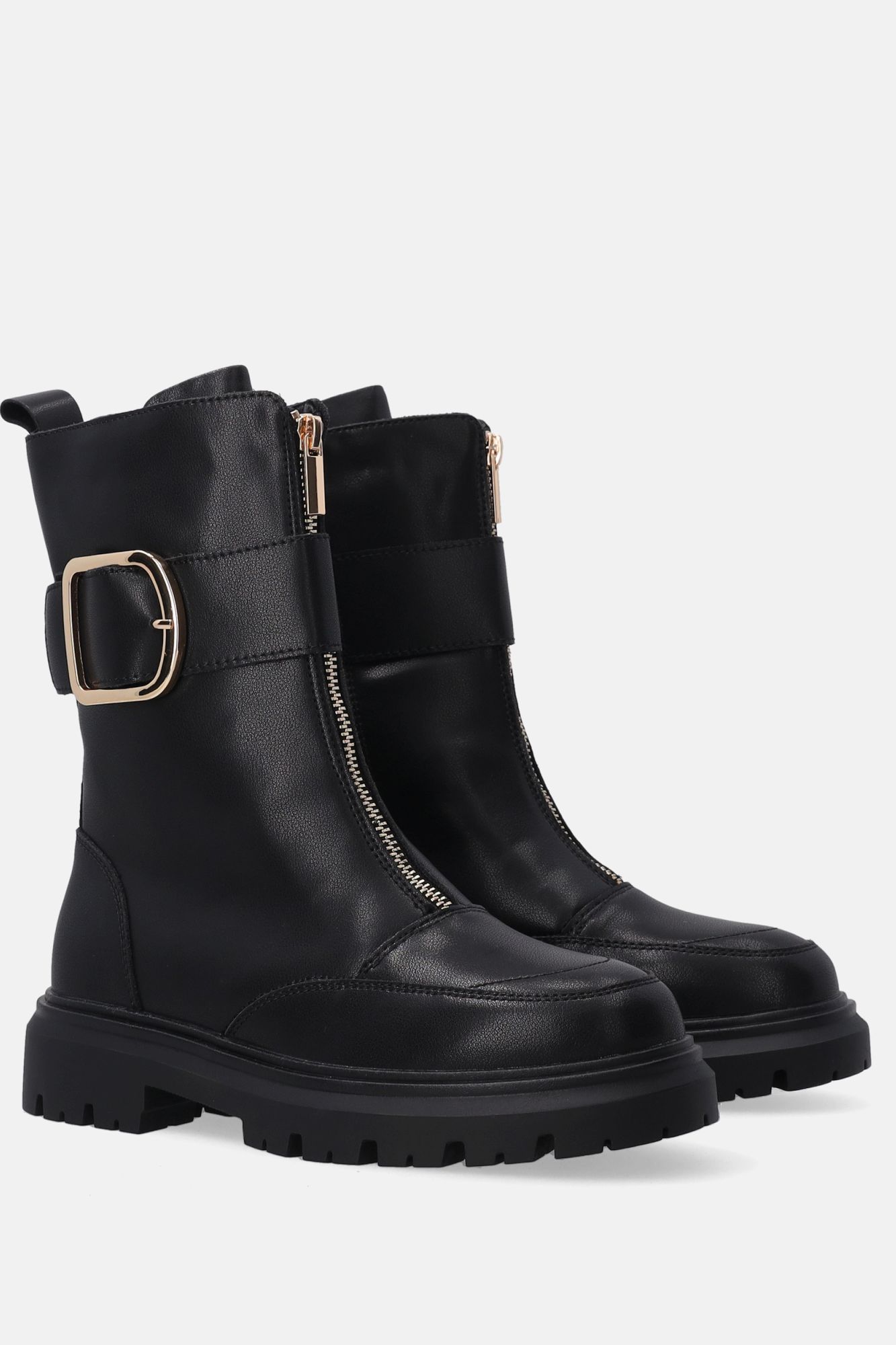 Dámské černé kožené kotníkové boty s přezkou - 36
