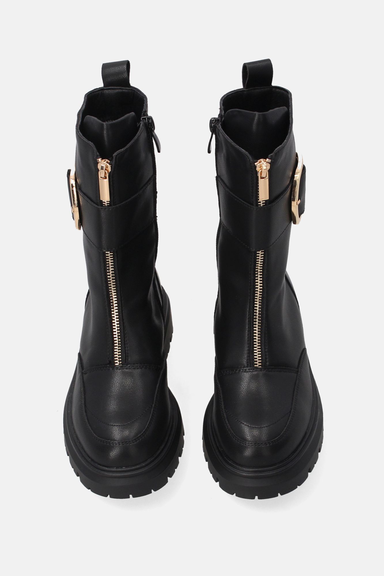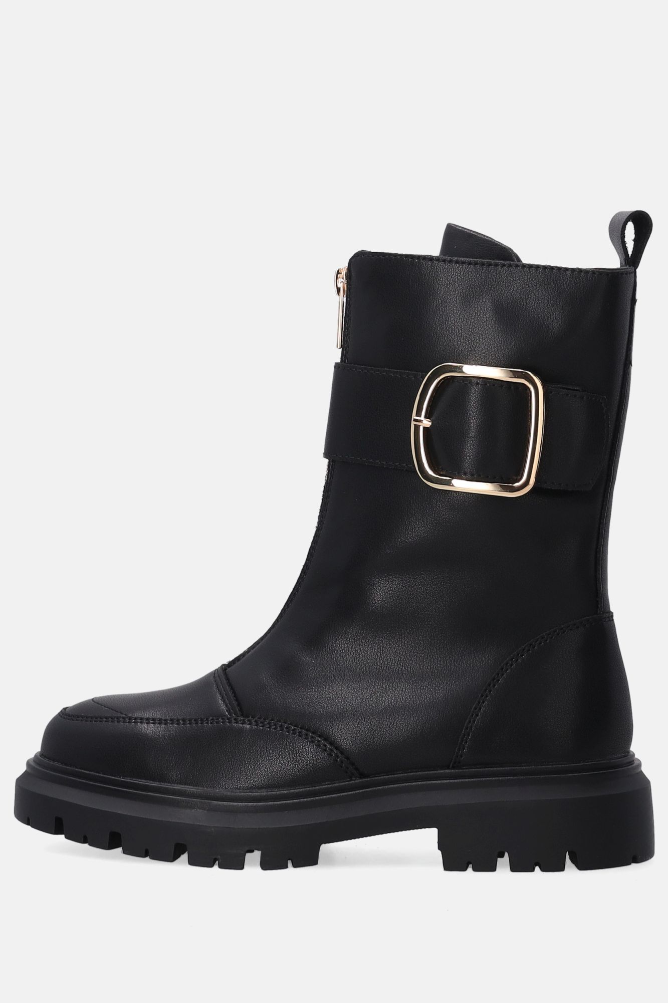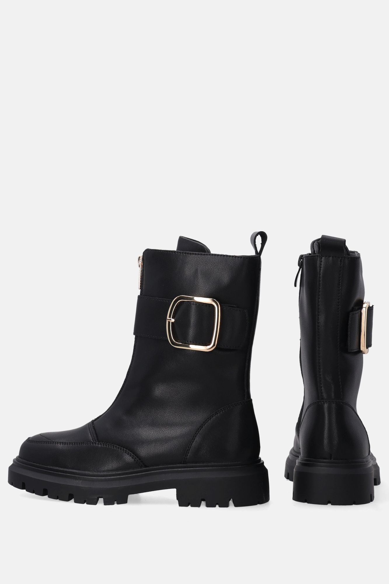 Dámské černé kožené kotníkové boty s přezkou - 36
