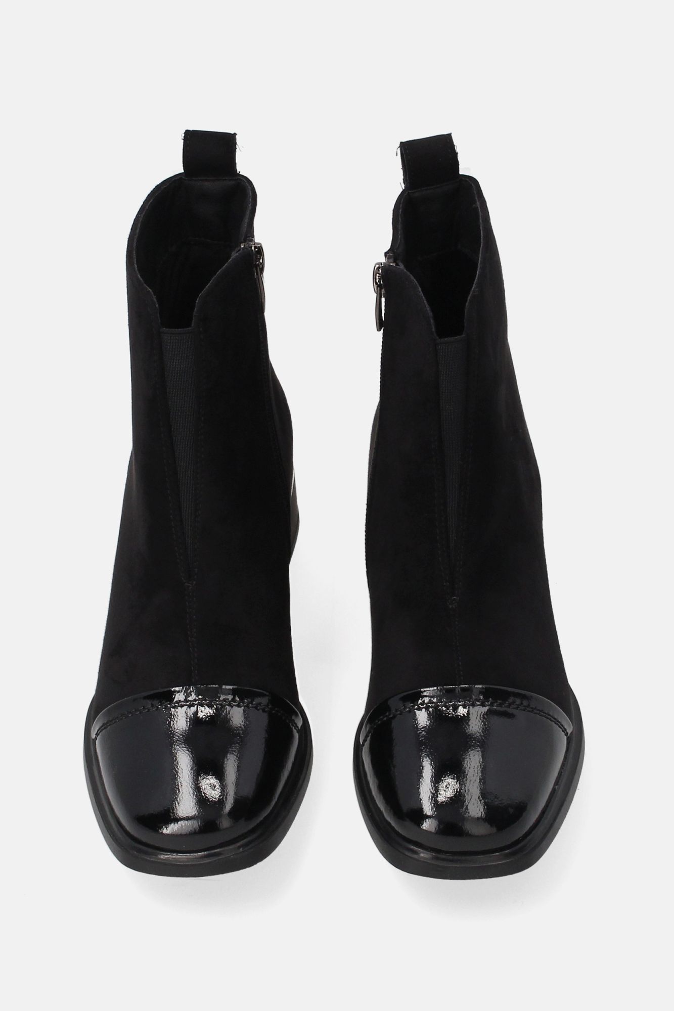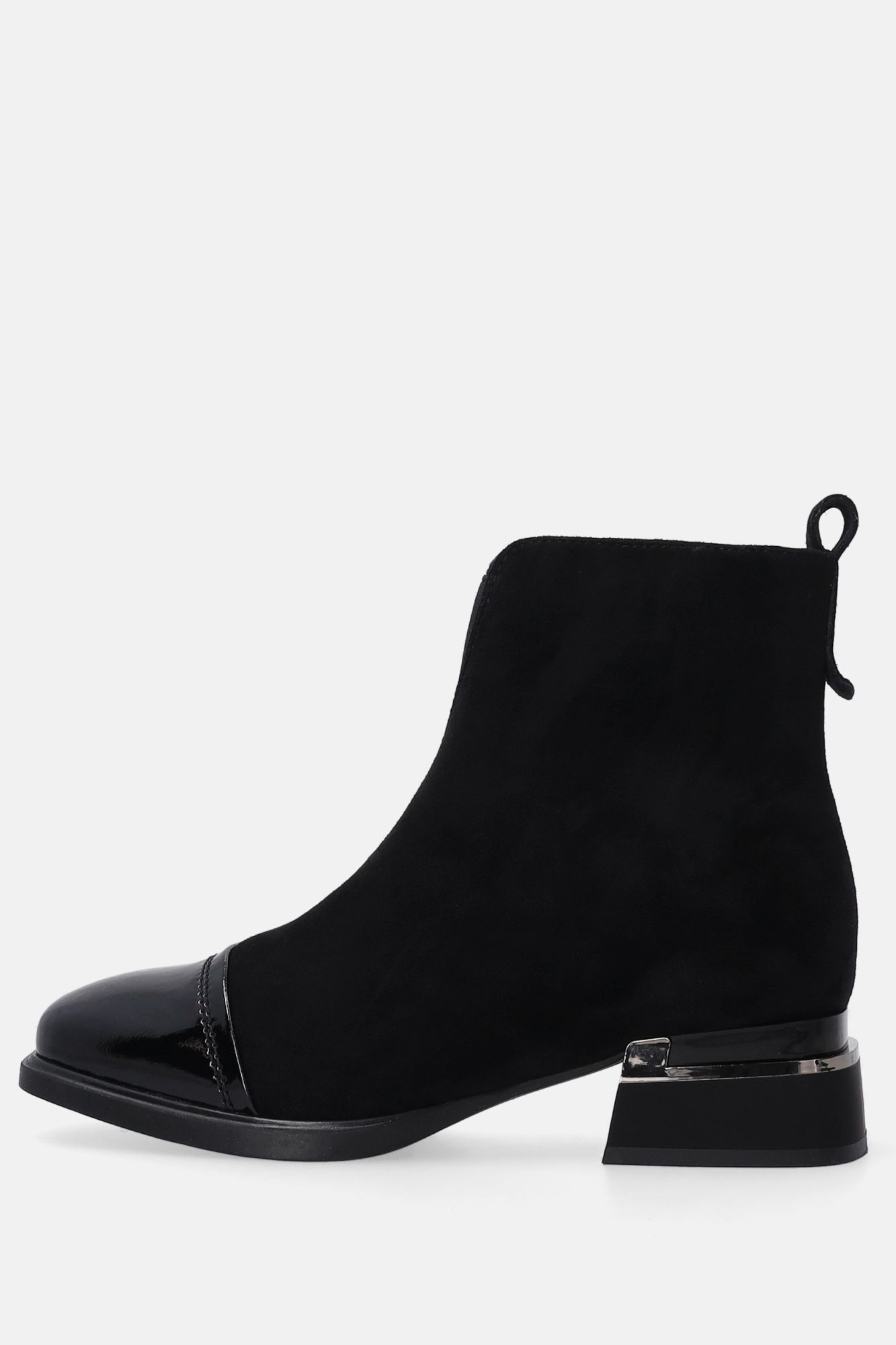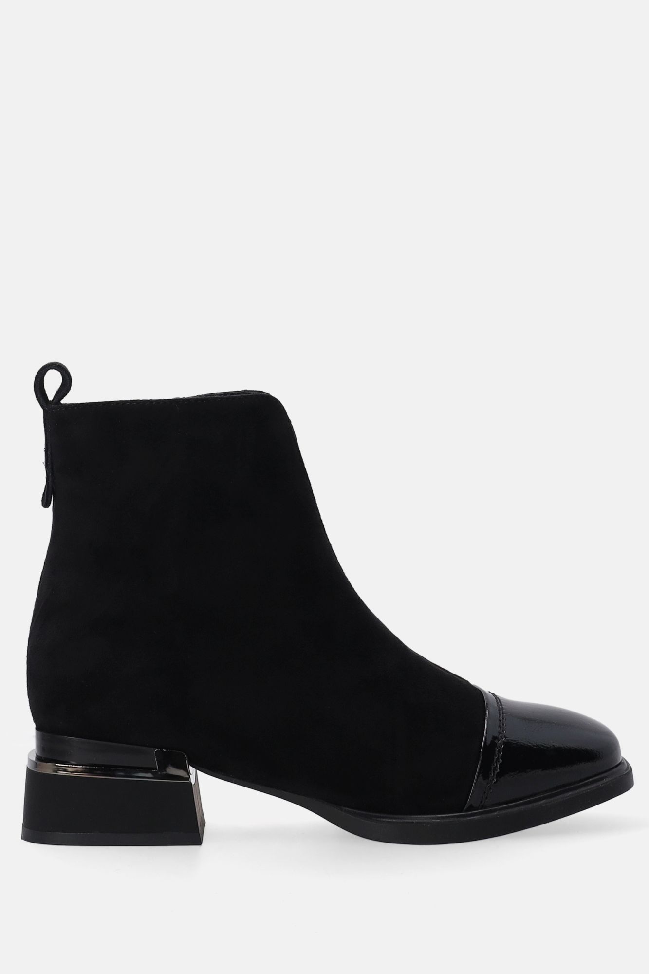Dámské černé semišové kotníkové boty s lakovanou špičkou