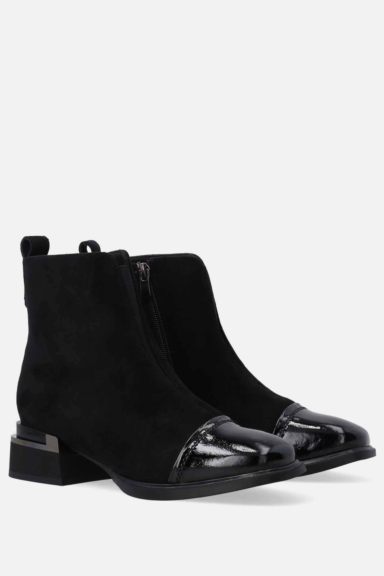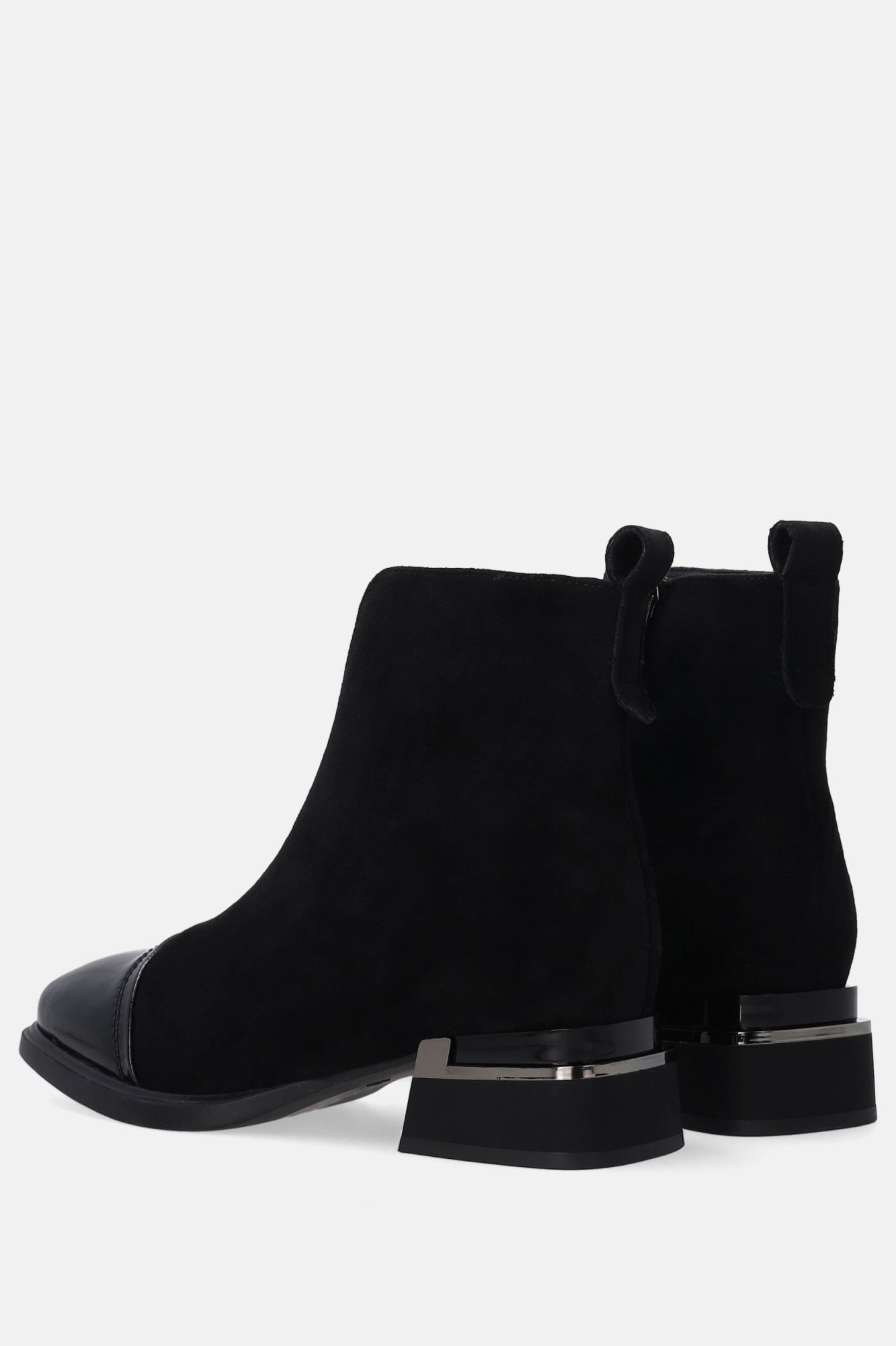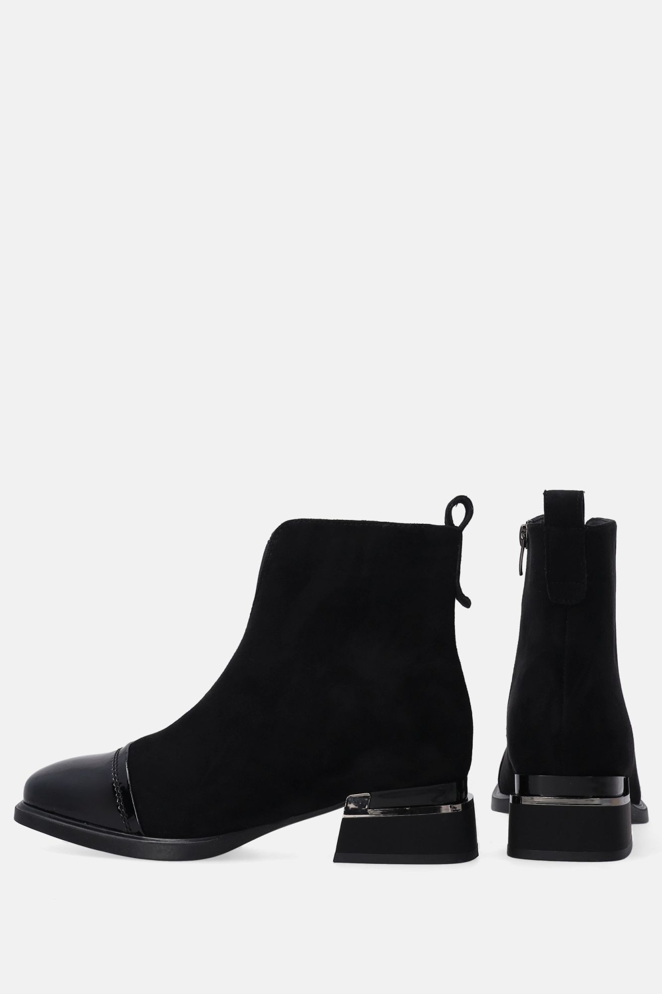 Dámské černé semišové kotníkové boty s lakovanou špičkou