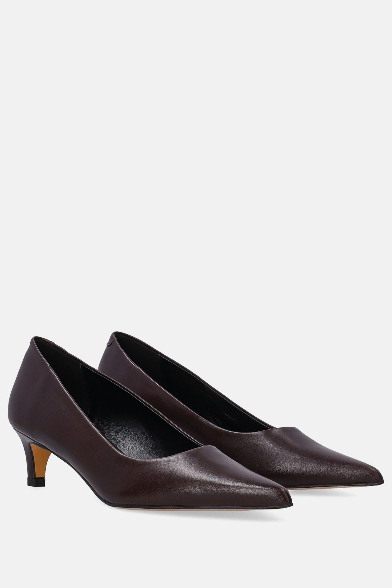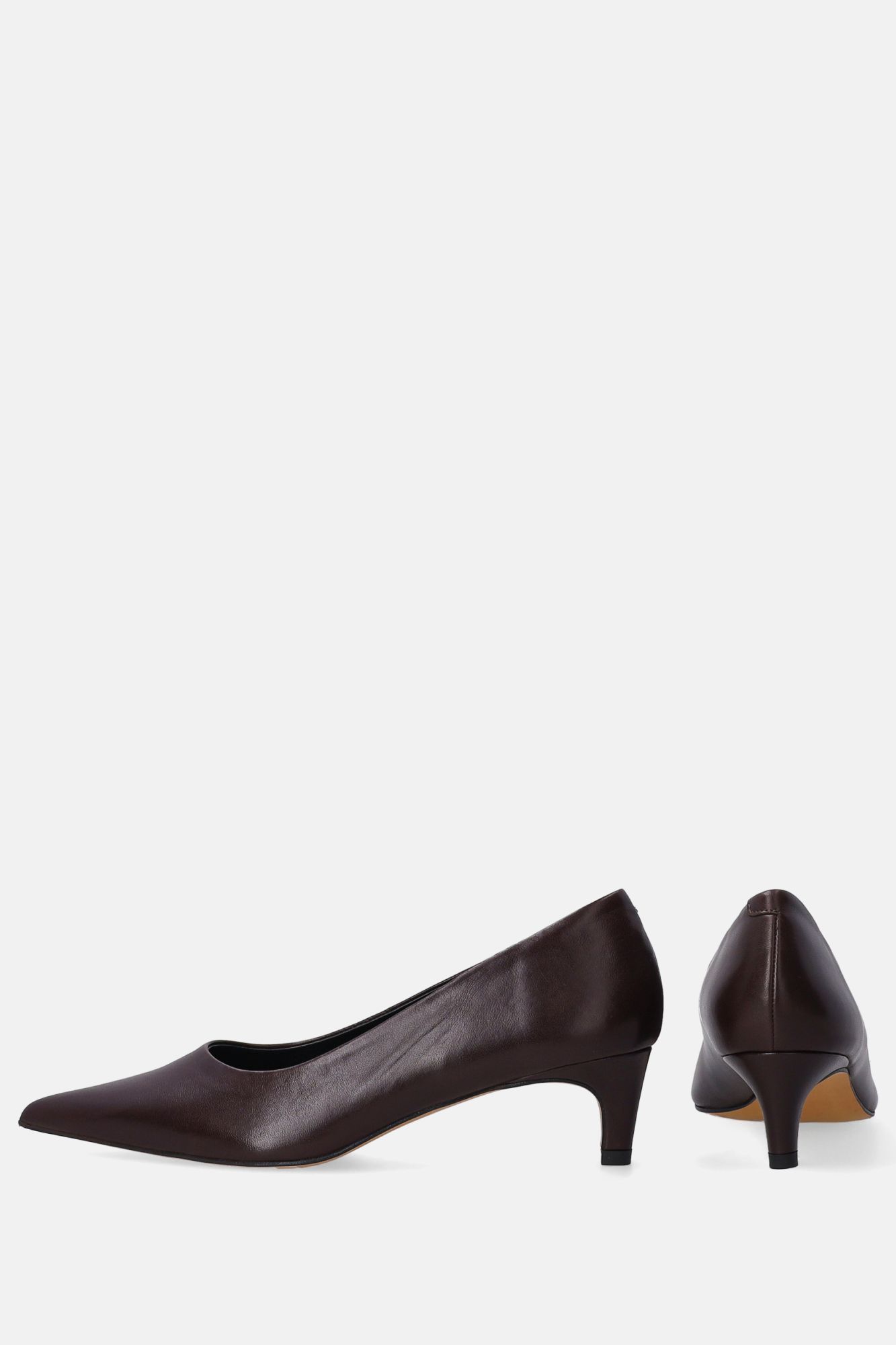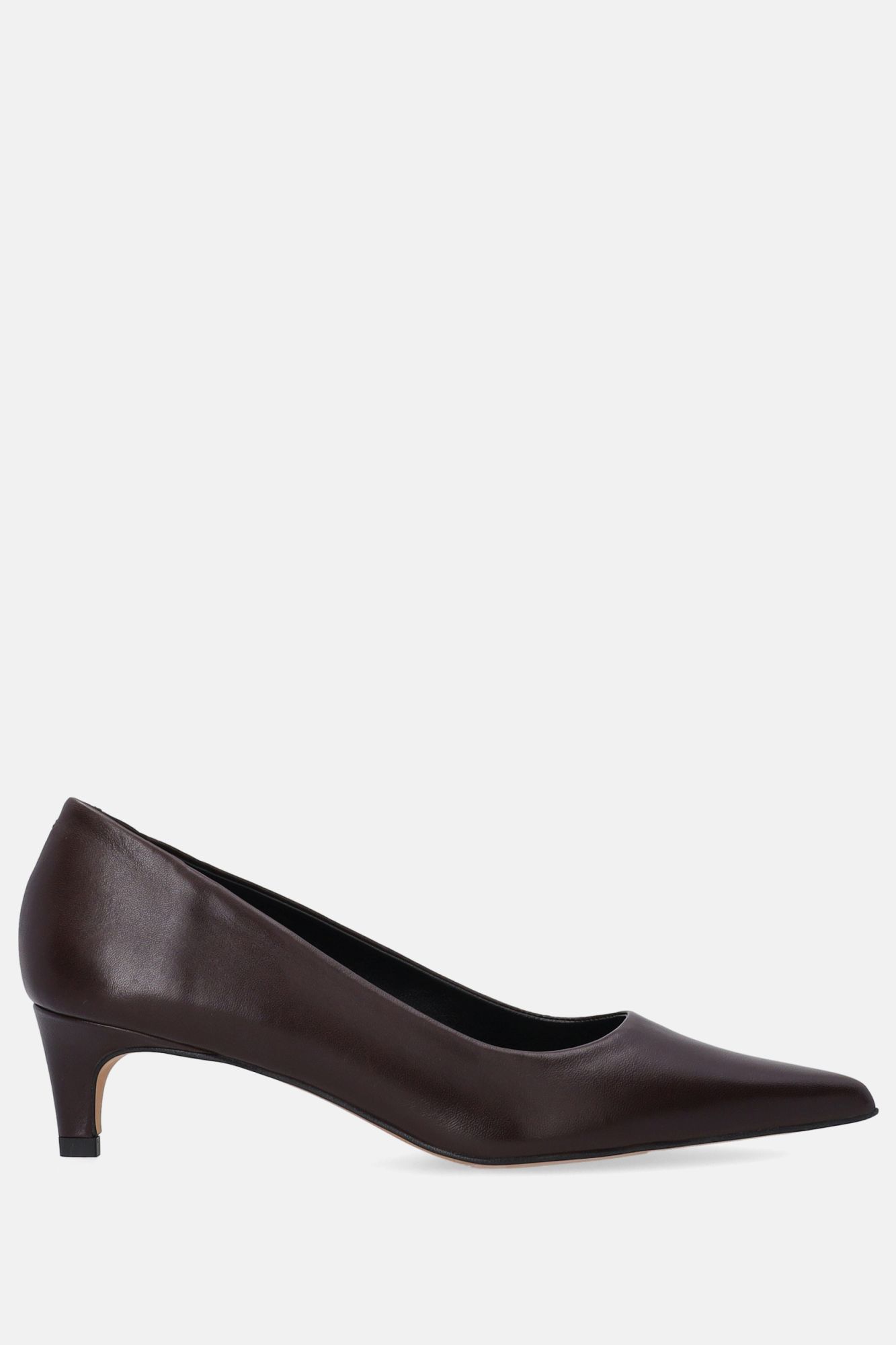 Hnědé kožené lodičky s nízkým podpatkem
