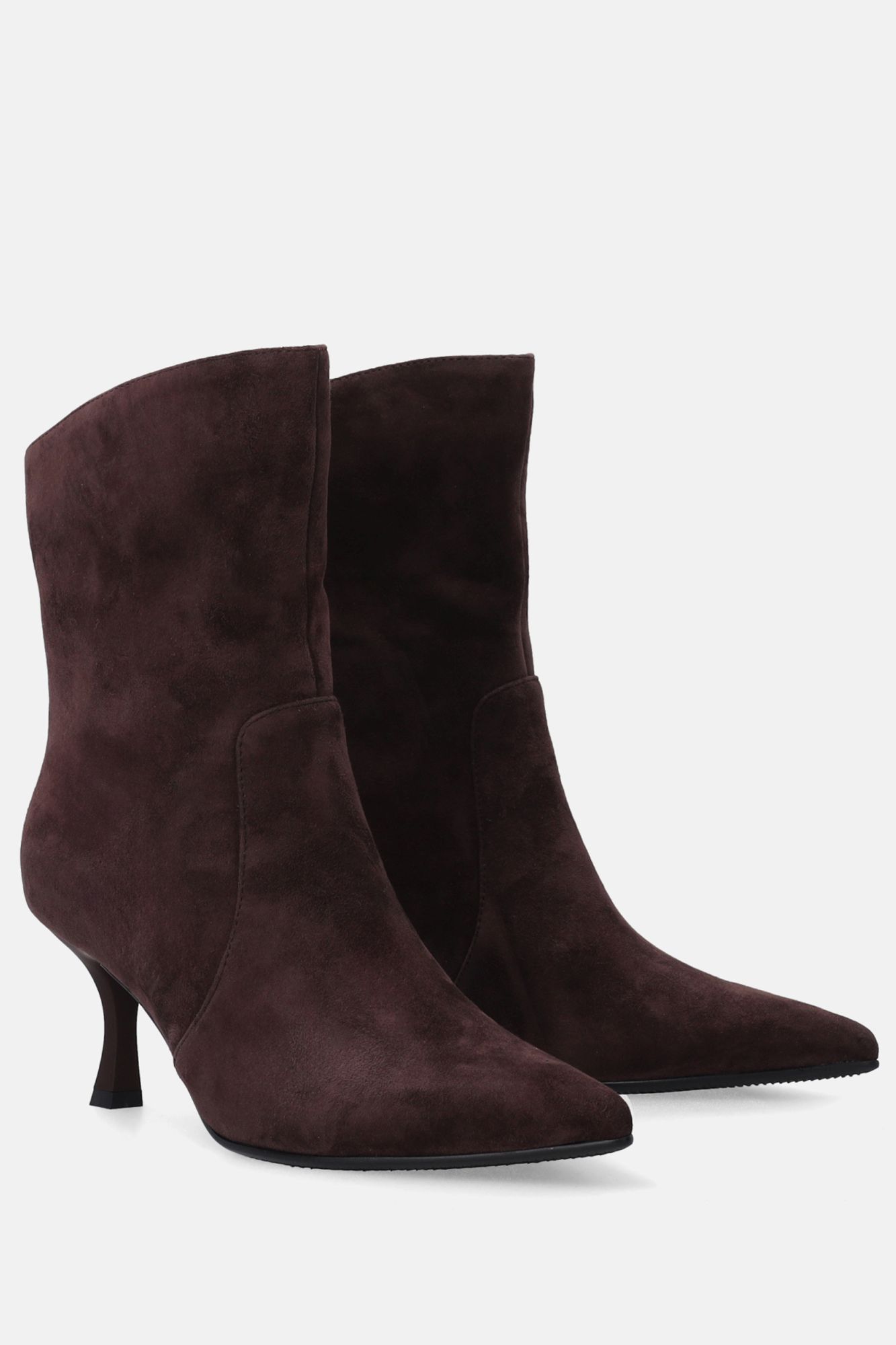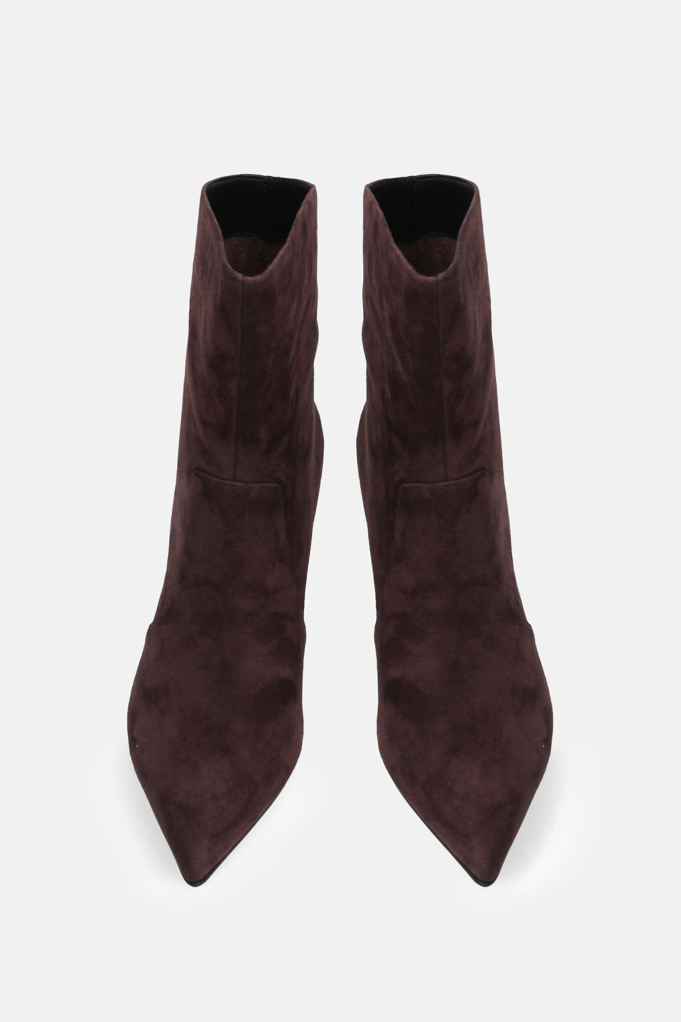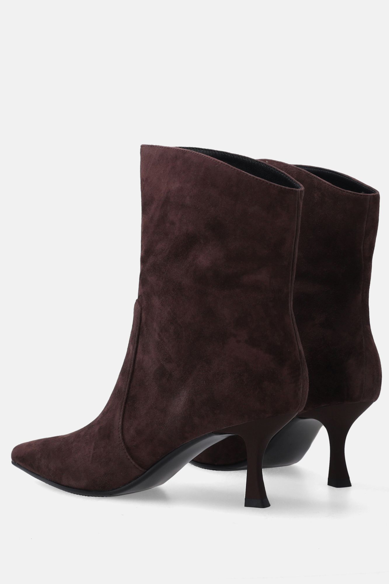 Hnědé semišové dámské kotníkové boty s vysokým podpatkem