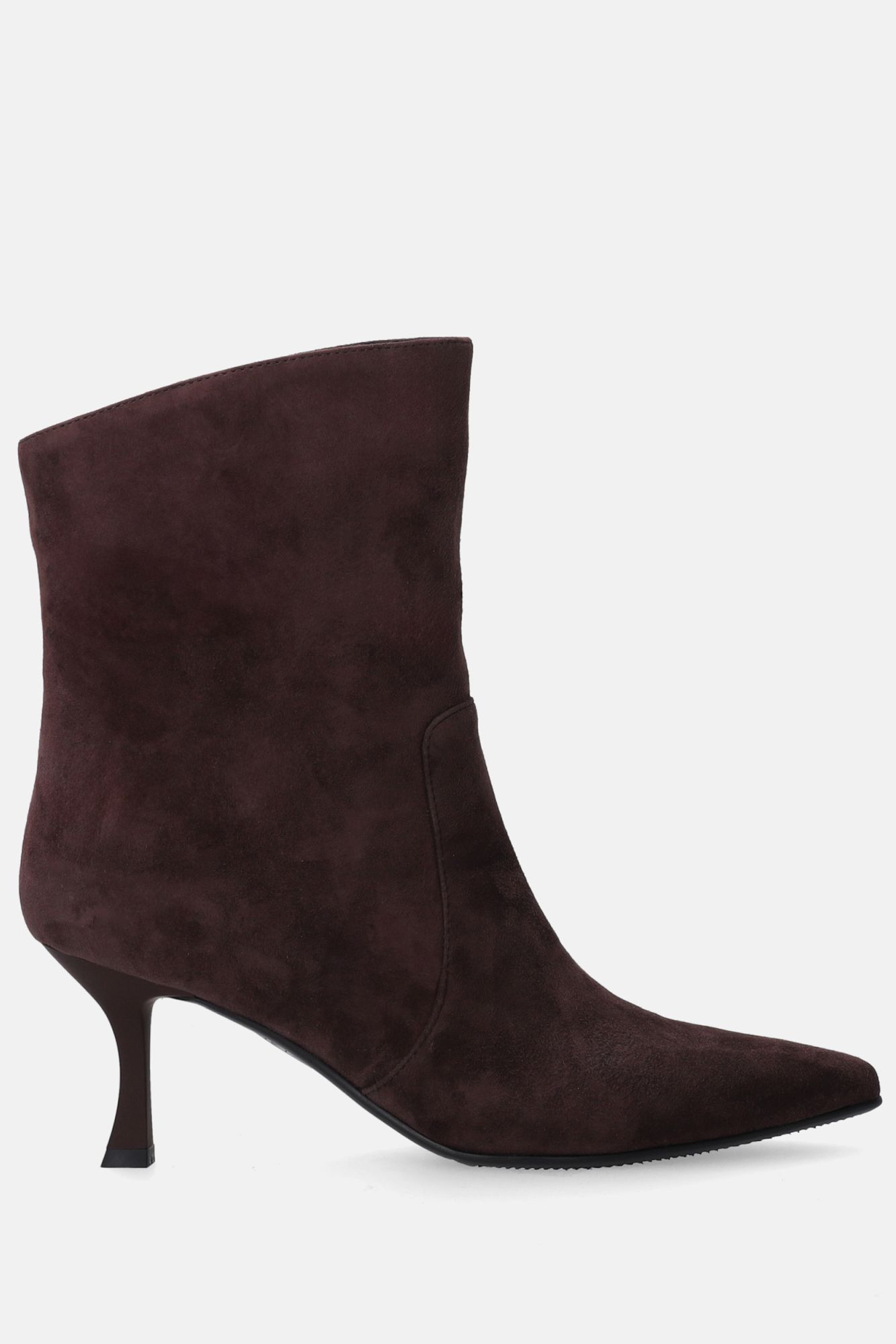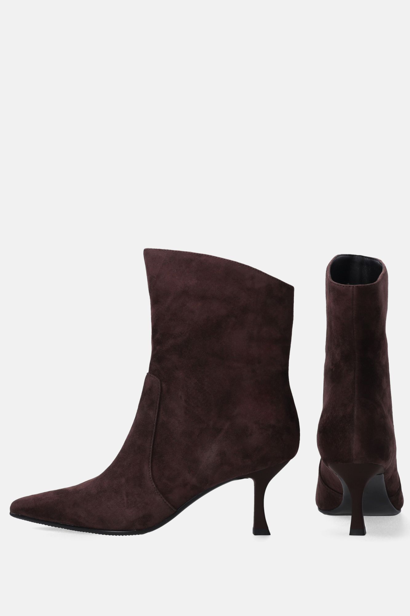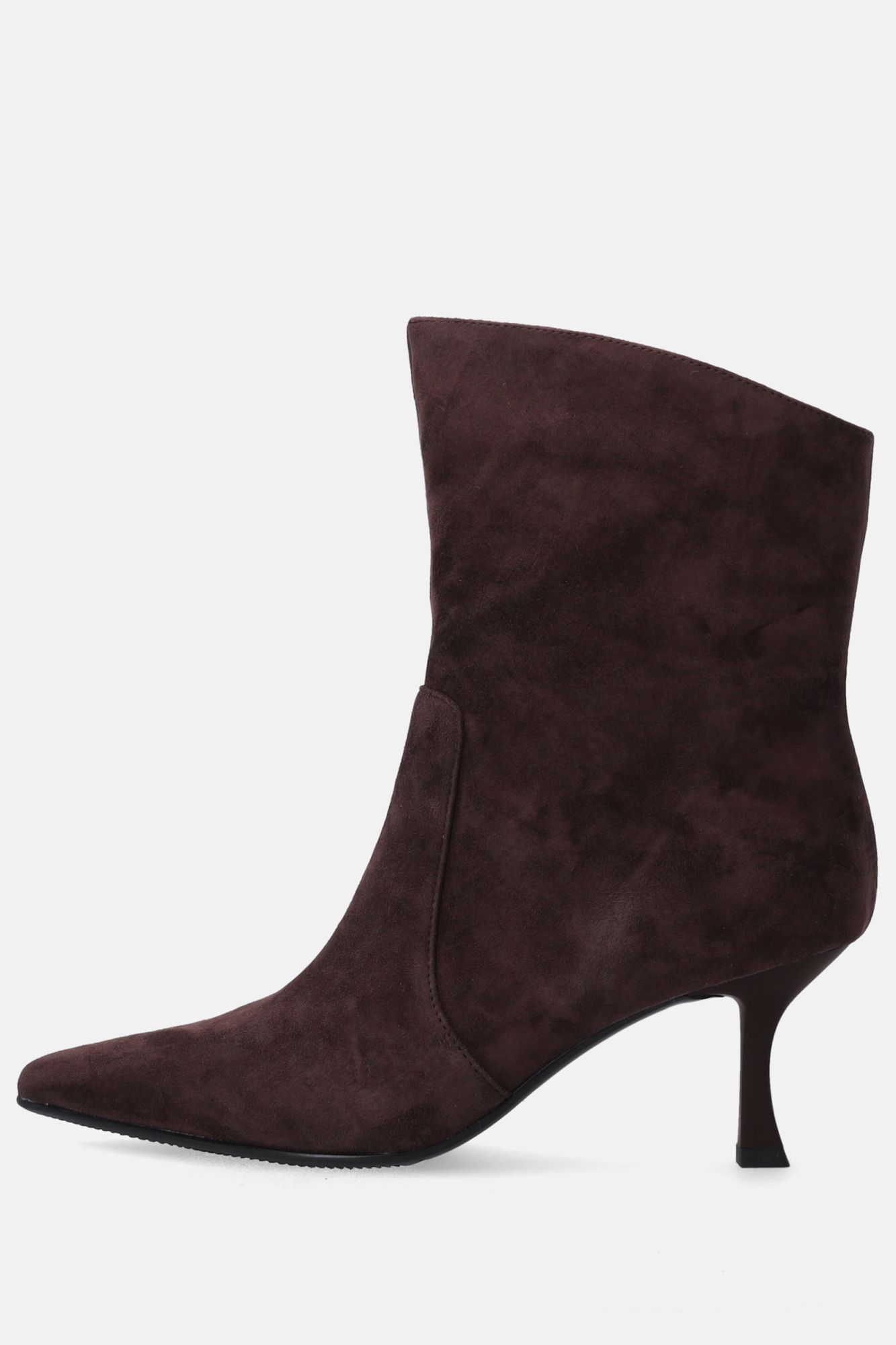 Hnědé semišové dámské kotníkové boty s vysokým podpatkem