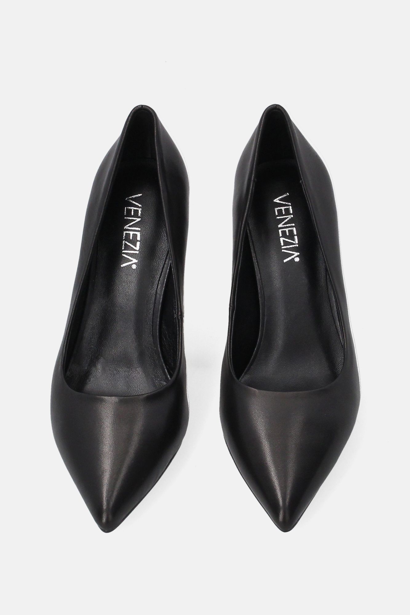Klasické černé kožené lodičky se špičatou špičkou - 39
