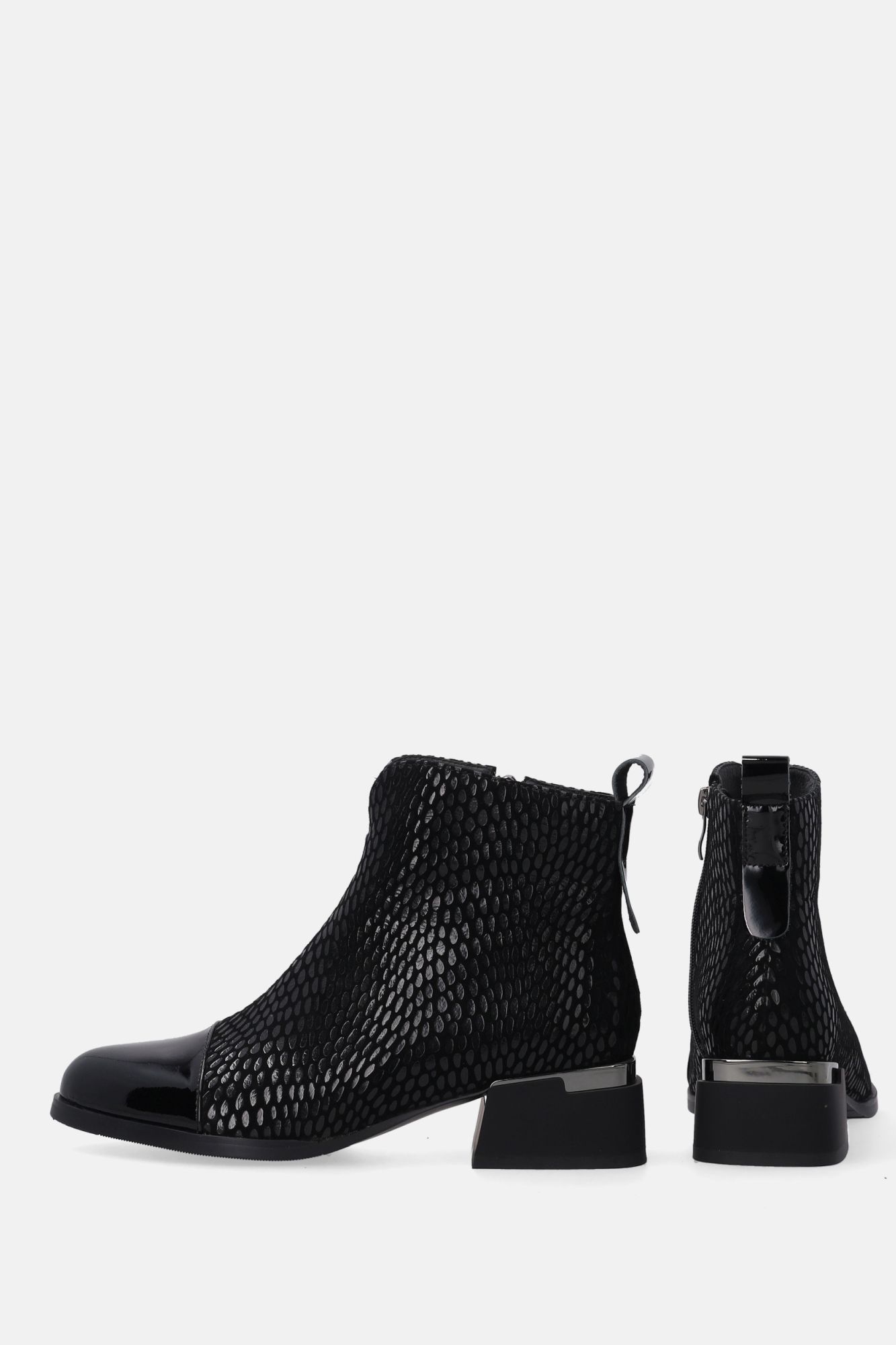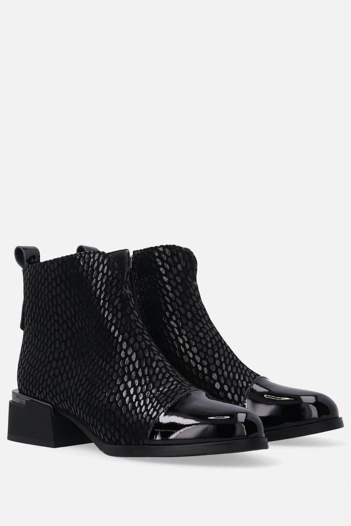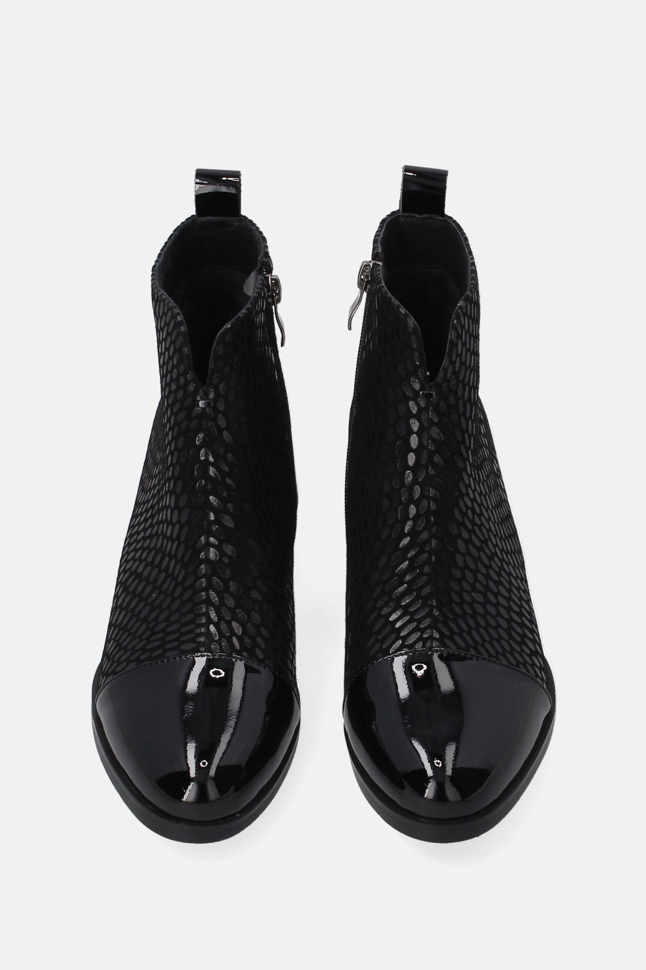 Dámské semišové chelsea boty s lakovanou špičkou a potiskem
