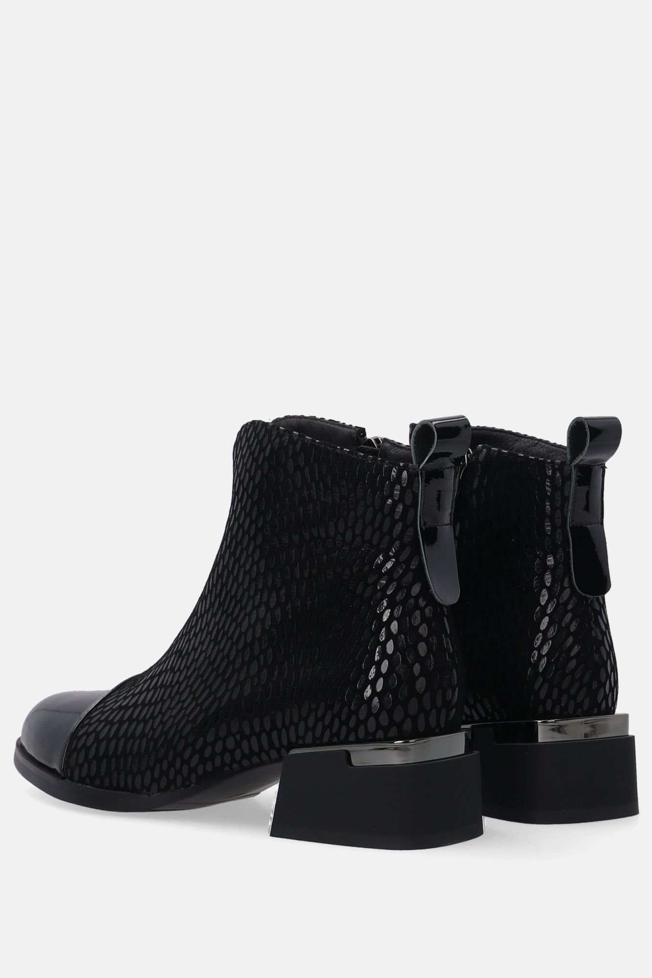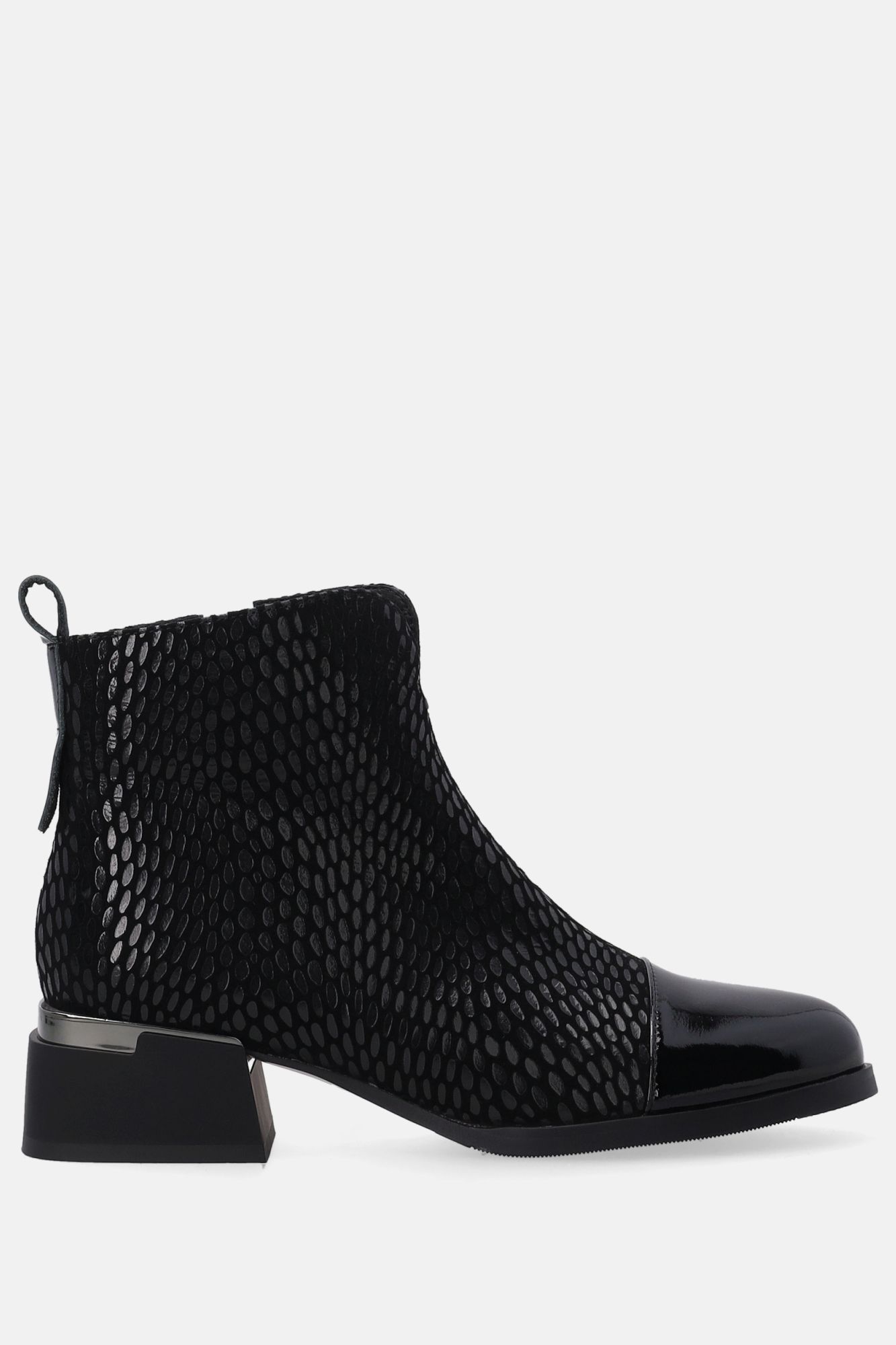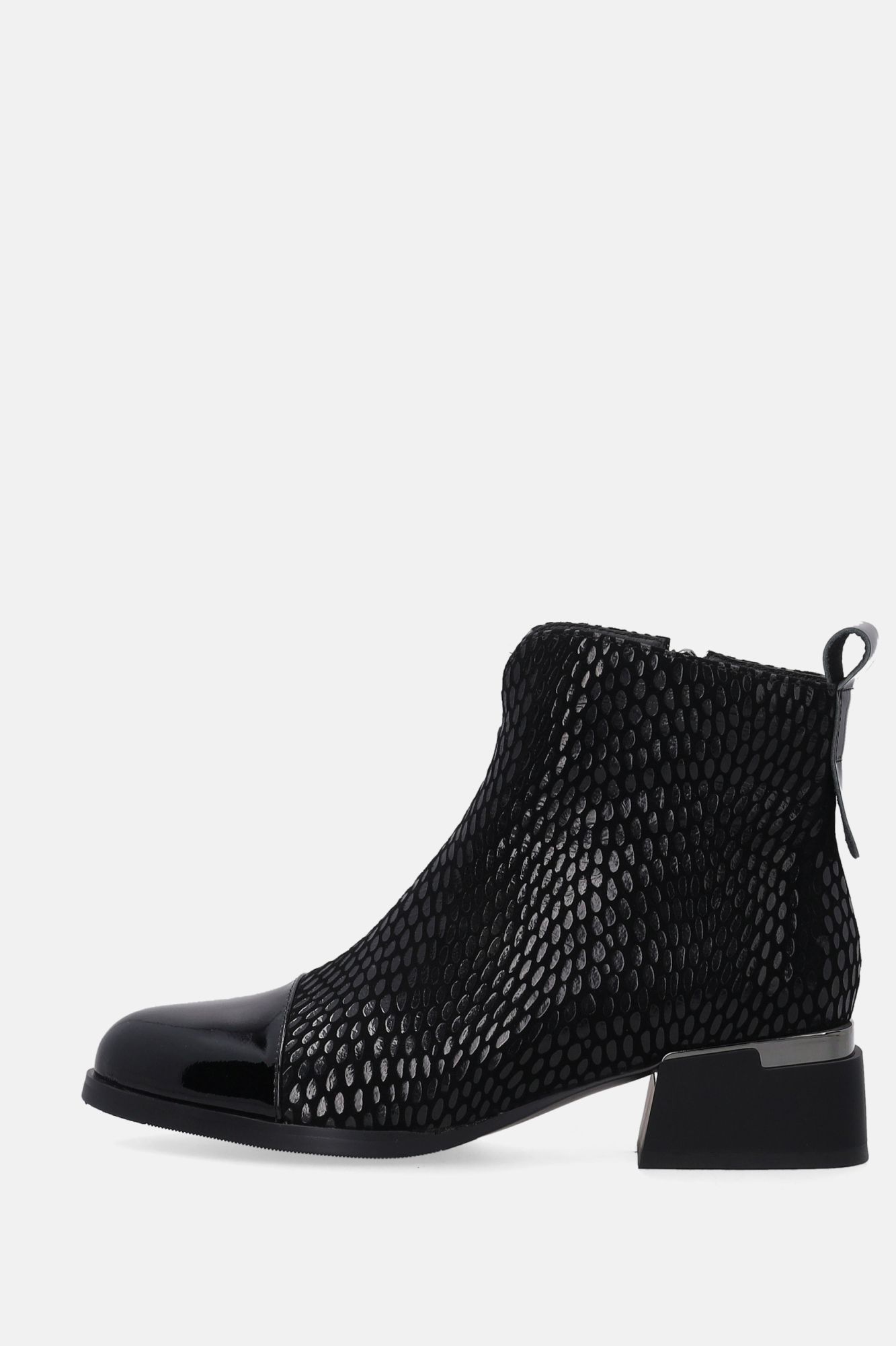 Dámské semišové chelsea boty s lakovanou špičkou a potiskem